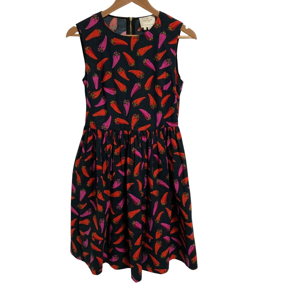 良品 kate spade ケイトスペード 唐辛子 ノースリーブワンピース 4サイズ Mサイズ相当 ブラック