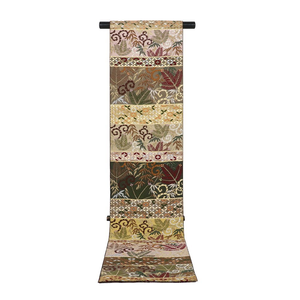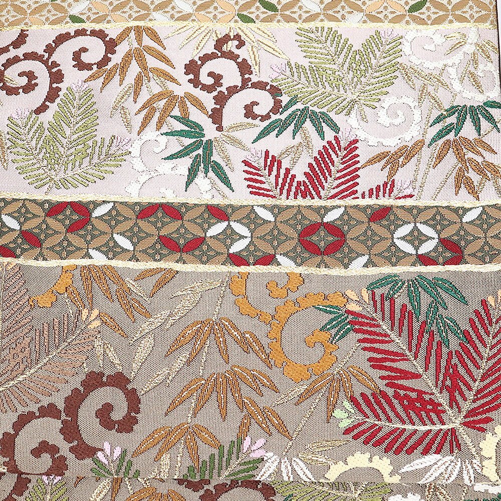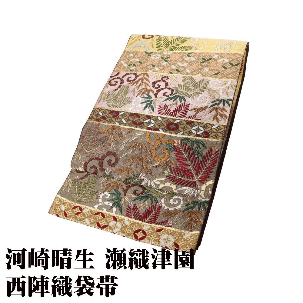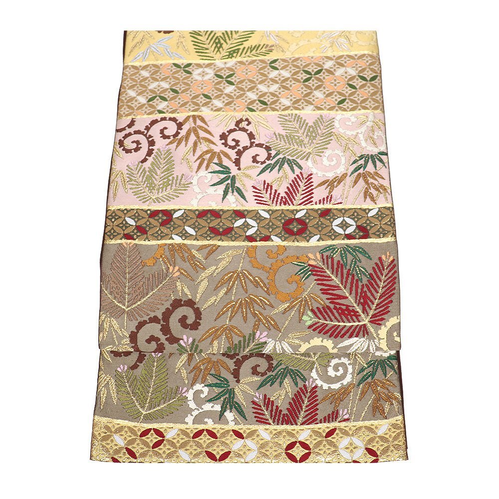 瀬織津園 河崎晴生 西陣織袋帯 ペルシャ華文 濃茶・黄緑・小豆色・ピンク・金箔地 唐織・松竹・七宝文 全通 (写真では上手く色が出ない場合があります。ご了承下さい) ※お使いのディスプレイの種類や設定の差により 実物の色と画像の色が少々異なることもございます。 |