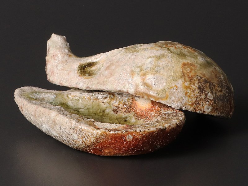 | 【古谷道生】 1946(昭和21)年 ~ 2000(平成12)年 信楽町神山に穴窯を築いて作家となり信楽陶芸展では二度にわたり最優秀賞を受賞、そのほか西武工芸大賞展大賞、第20回の日本伝統工芸展近畿支部展では日本工芸会近畿賞および京都市教育委員長賞のW受賞となる。また、1985年に三重県伊賀丸柱に二基目の穴窯を築いて信楽神山の窯で信楽を丸柱の窯で伊賀をそれぞれ焼き上げる。野村美術館、池袋西武、ニューヨークギャラリー「ゼロ」、三越ギャラリー、ポートピアホテルなど全国各地のギャラリー・百貨店にて開催。作品は主に古信楽・古伊賀を追及した花器・壷・茶陶が中心であったが信楽現代作家の中でも注目株の一人であったが早世、近年ネット競売などで人気作家となる。 |