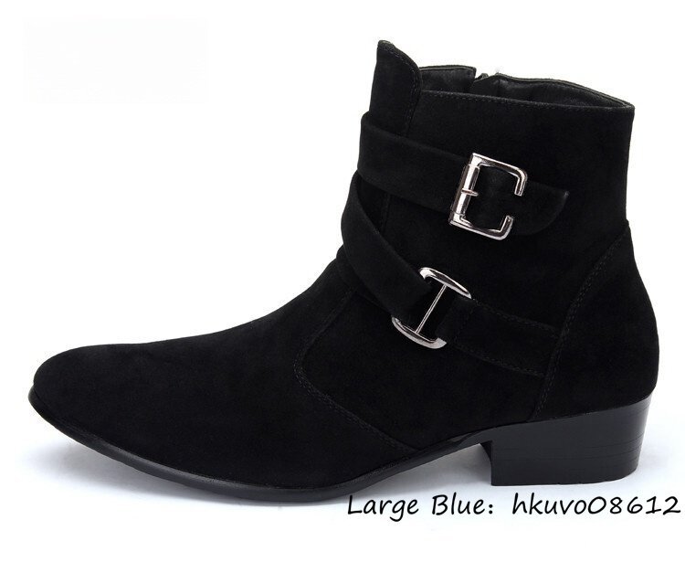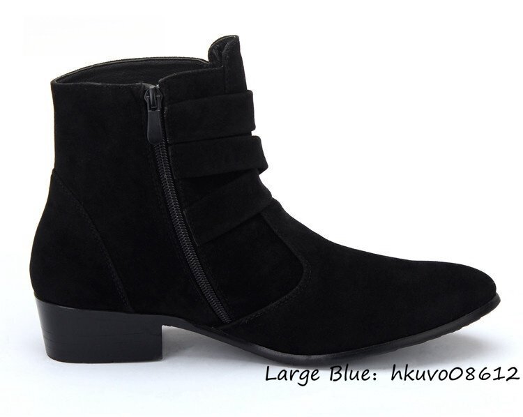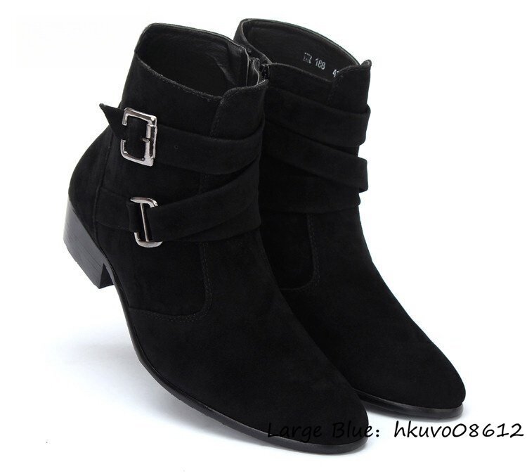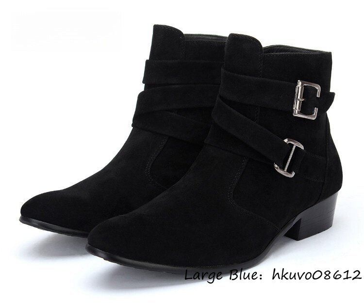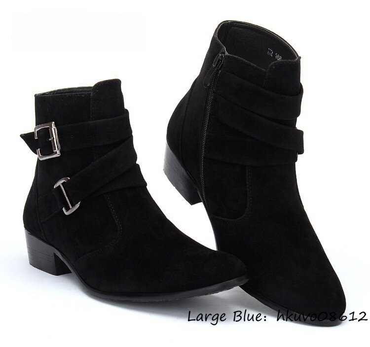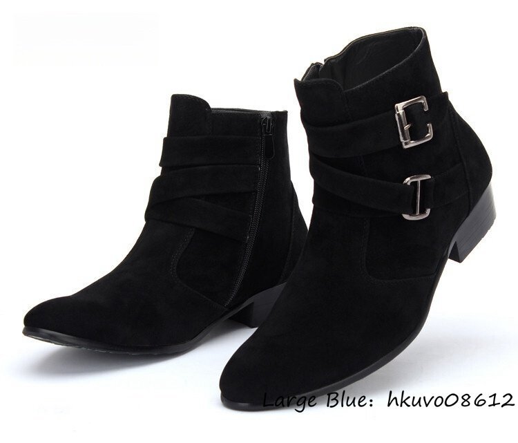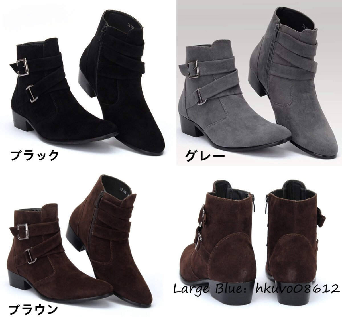 新品★スエード革 メンズ ショートブーツ ブーツ ヒールブーツ サイドジップ シークレット クラシック お洒落 シンプル ブラック 25.5cm