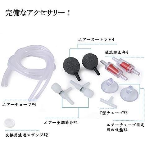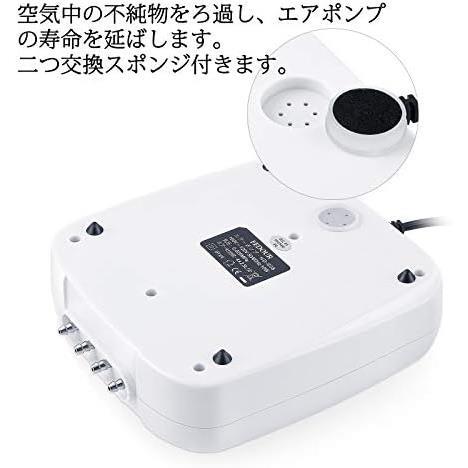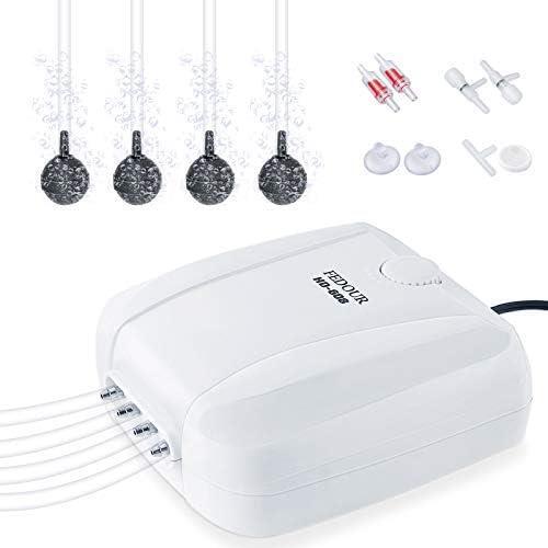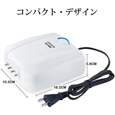 FEDOUR パワー強い水槽エアーポンプ 10W四つ吐出口 魚と水栽培などに適用する酸素増加ポンプ アクセサリー付き