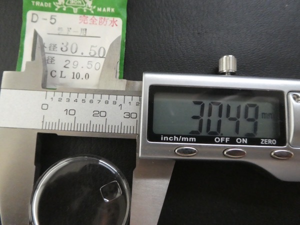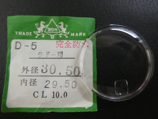 ラドー用風防未使用(当時物社外品)です。直径30.50ミリ表記(実寸計測は画像のような測り方で30.49ミリくらい)。適合機種は不明です。