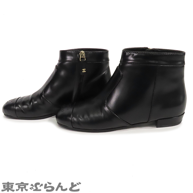 101797545 シャネル CHANEL ココマーク ショートブーツ G29240 ブラック ゴールド金具 レザー 37C ブーツ レディース