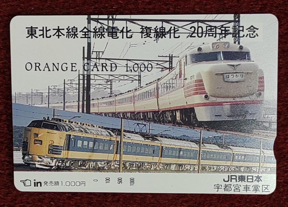 東北本線全線電化 複線化 20周年記念 JR東日本宇都宮車掌区《未使用1000円券》 オレンジカード オレカ コレクション放出