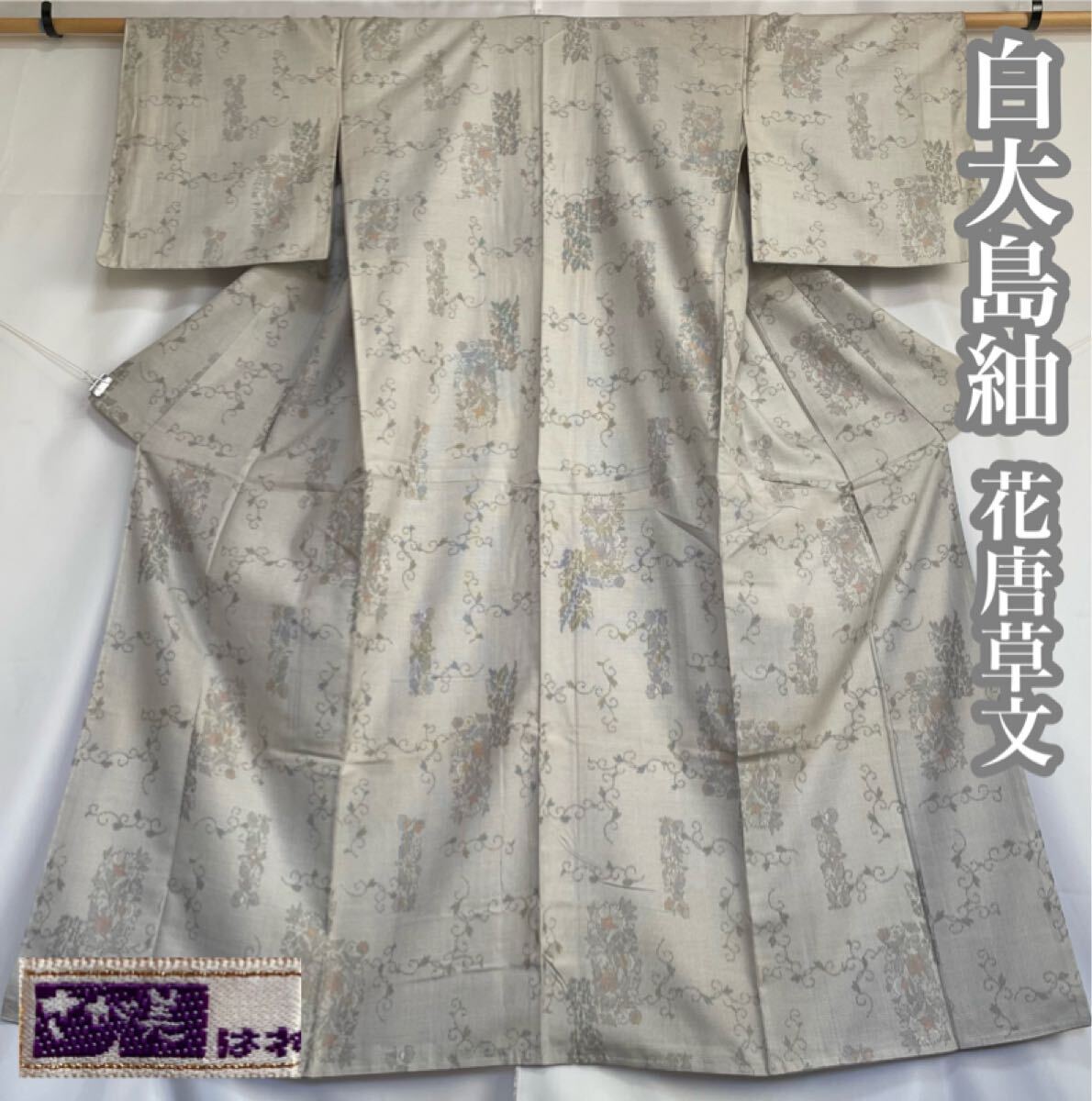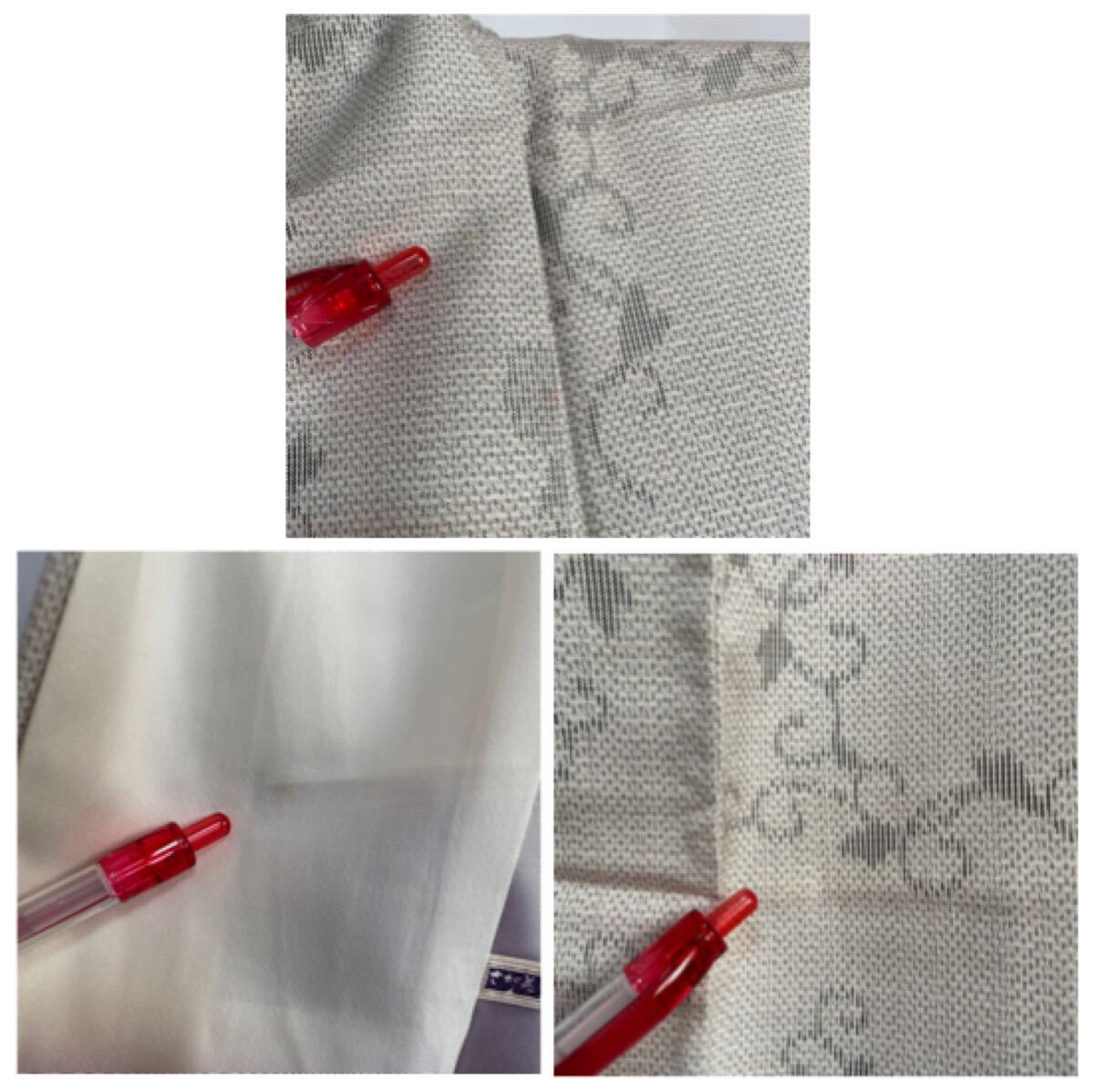 ・花唐草文様が上品で素敵な白大島紬のお着物です。 ・左衿、衿裏、後身頃にシミがあります。(写真 8枚目) ・衿先、左前袖にシミがあります。(写真9枚目) ・まだまだ着用していただけますので、おすすめのお着物です。 ・お安く出品致しますので、是非この機会にいかがでしょうか。 |