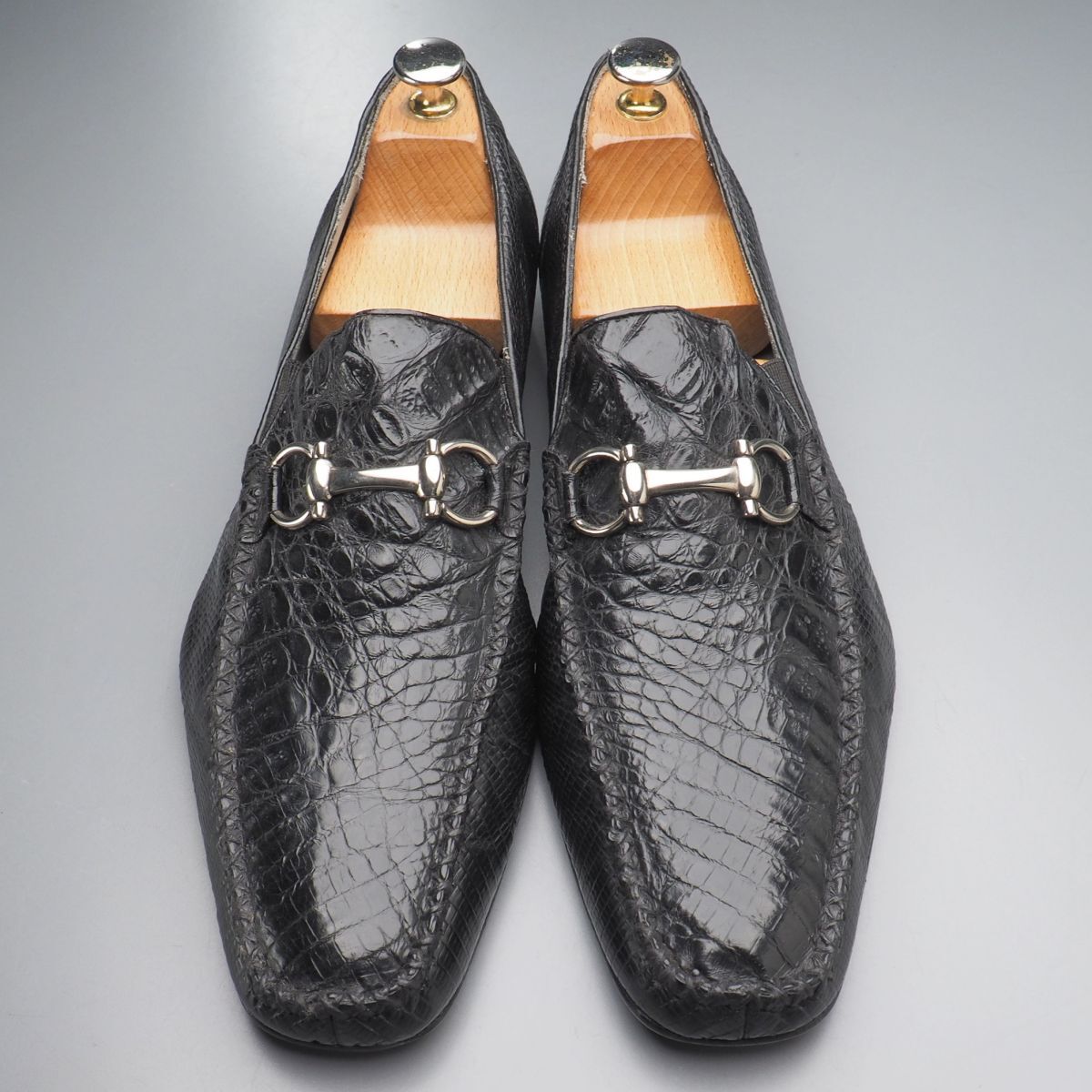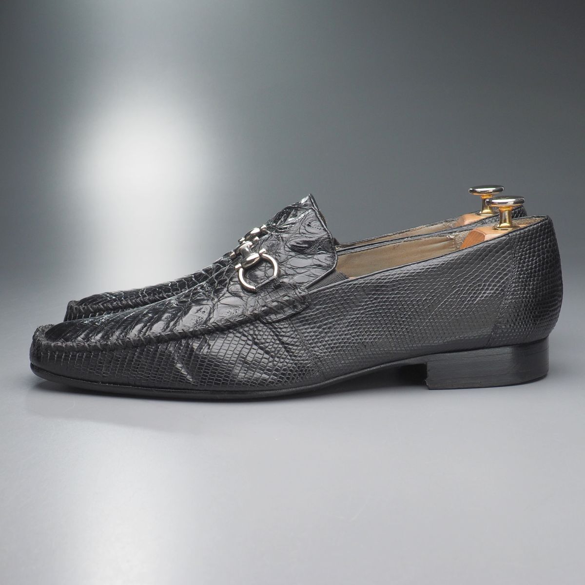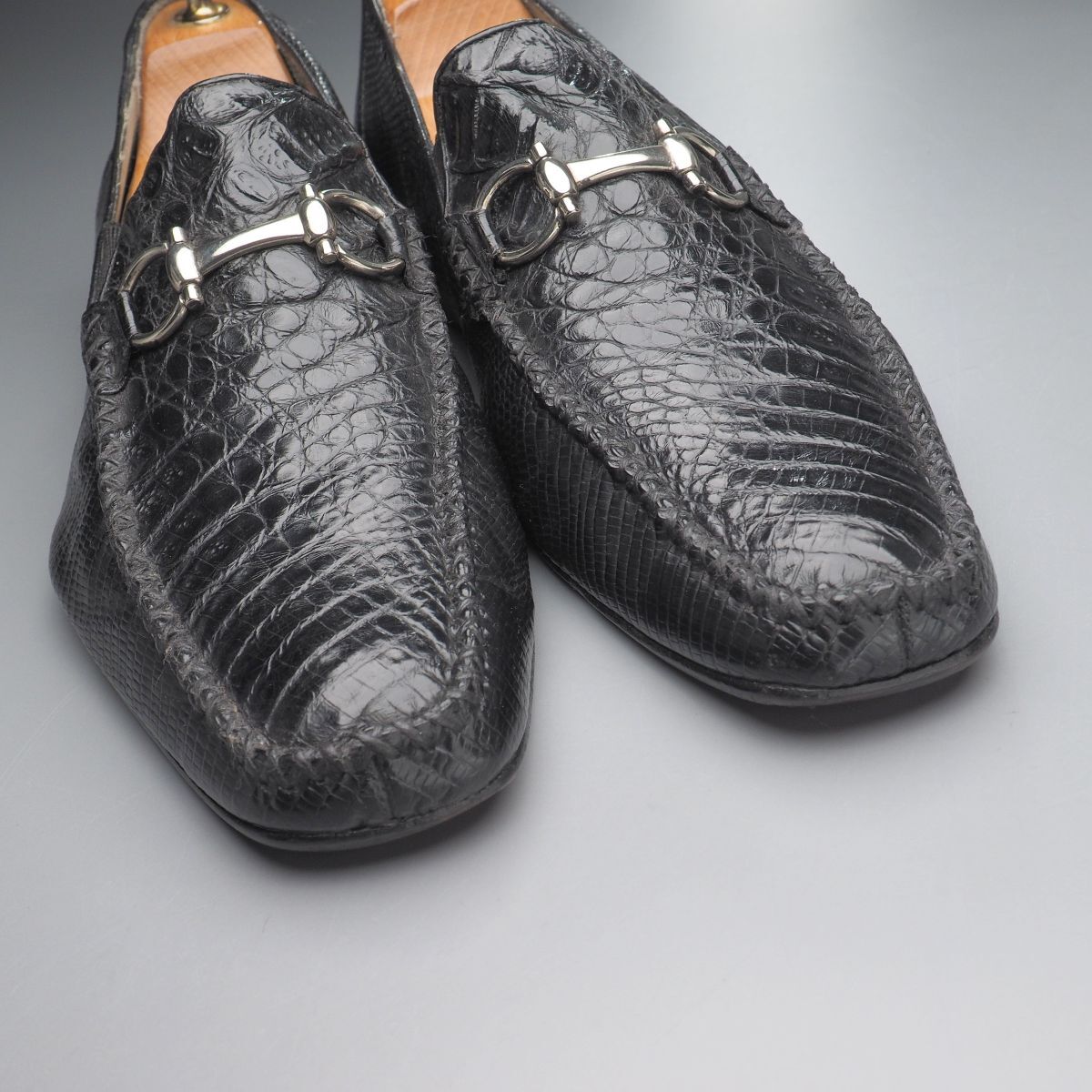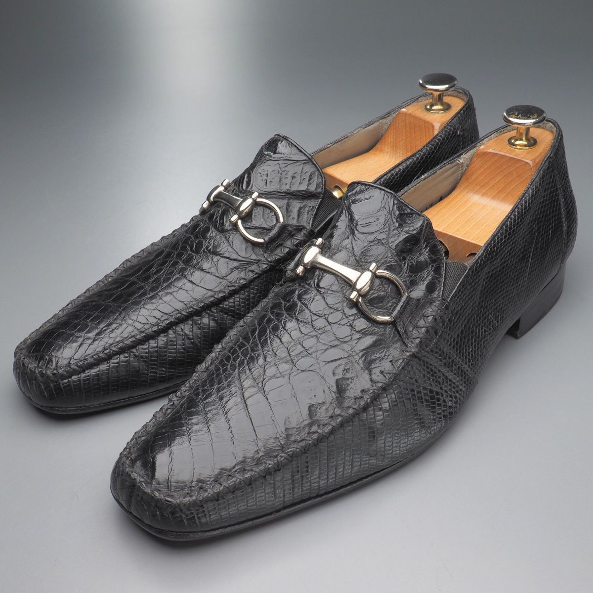 | W5539//*ベルヴェデール/Belvedere*メンズ9.5/本クロコダイル×本リザード/ビットローファー/レザースリッポン/革靴/黒/ブラック | |||