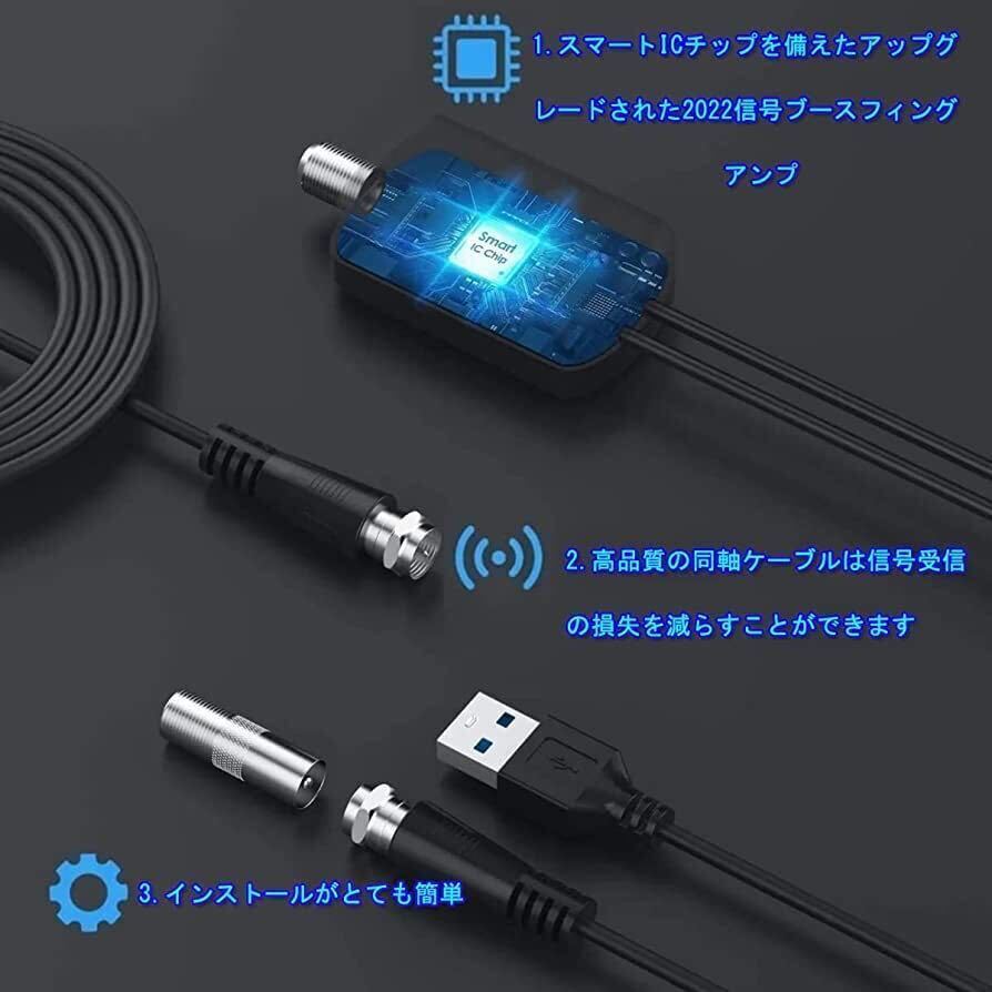 室内アンテナ 4K HD TV アンテナ 地デジ テレビ アンテナ 信号ブースター内蔵 430KM 受信範囲 360度全方位受信 高性能 高感度 UHF VHF対応 USB式 薄型&小型軽量設計 設置簡単 全種類テレビ対応 英語取扱説明書(ブラック)