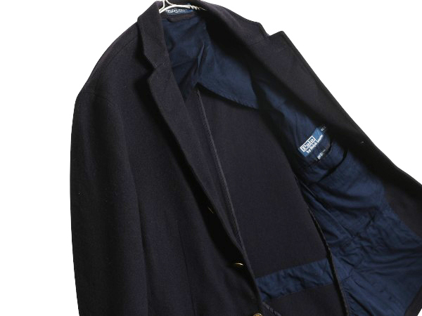 | 商品名 | 90s ポロ ラルフローレン メルトン テーラード ジャケット メンズ M 程/ 古着 オールド ブレザー ヘビーウェイト ウール ワンポイント 濃紺 |