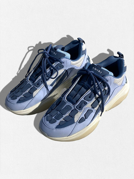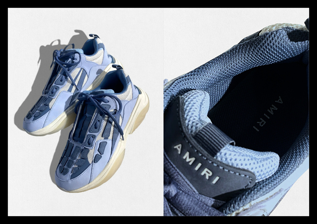 2013年にスタートした 《 AMIRI - アミリ - 》は、エフォートレスでクールなストリートウェアを得意とする L.A の人気レーベル。 クリエイティブディレクターのマイク・アミリは、自身が影響を受けたハリウッドのアンダーグラウンド・ロックや スケートカルチャーをインスピレーション源にしています。 多くの工程がロサンゼルスにある自社スタジオにて手作業で行われ、 デニムのダメージ加工やレザーのパッチワークは時間と手間をかけた芸術的な仕上がりとなっております。 その圧倒的なクオリティとデザインから、ジャスティン・ビーバーやエイサップ・ロッキーをはじめとする、 感度の高い世界のセレブリティがこぞって愛用しているモダンラグジュアリーなブランドです。 そんな 《 AMIRI - アミリ - 》の、特に海外で話題の人気モデルを「BONE RUNNER」。 アッパーには天然皮革のスムースレザーと、履き口のメッシュファブリックのパネル切替、 ボリュームの有るラバーのミッド・アウトソールで仕上げられた1足。 また、ボリュームスニーカーの流れを汲んだチャンキーなシルエットに加え、 どこでも存在感抜群なレザーのパッチワークで表現した足の骨のデザイン、流線型で特徴的なアッパー、 そして高級感の有るスウェードレザーの素材使いは秀逸。 モードにもストリートにも着こなせる高いデザイン性、どれを取っても素晴らしい名作と言える1足♪ 有名なラッパーやインフルエンサーが愛用するブランドでインスタグラムで話題を呼んだ、 コーデの主役を張れるスニーカーとなりますので、この機会に是非ご検討ください。 もちろん正規品・新品未使用品ですので、安心してお求め頂けます。 |