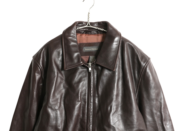 | 商品名 | 90s バナナリパブリック 本革 レザー スポーツ ジャケット メンズ L / オールド 革ジャン フルジップ シングル ライダース スイングトップ |