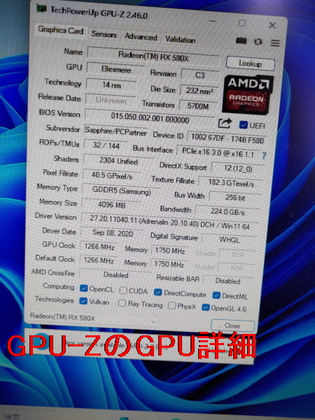 PREDATOR Radeon RX 580X 4GB DDR5動作確認中古品