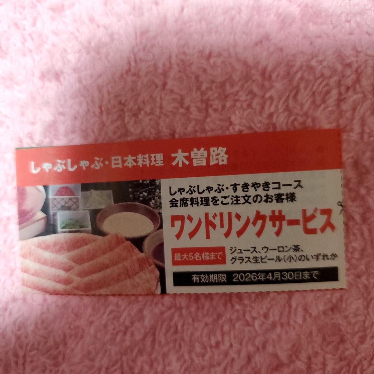 木曽路 ワンドリンクサービス 最大5名 利用条件画像2確認お願いします 有効期限2026.4.30ハガキに添付(目隠しします)して送付致します、ハガキによる未着の補償はありません。