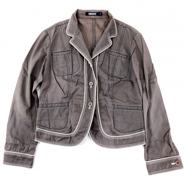 DKNY ダナキャラン ニューヨーク Y2K 00s クロップド レトロ モード 古着 コットン混 テーラード ジャケット ストレッチ レディース 4 です。
