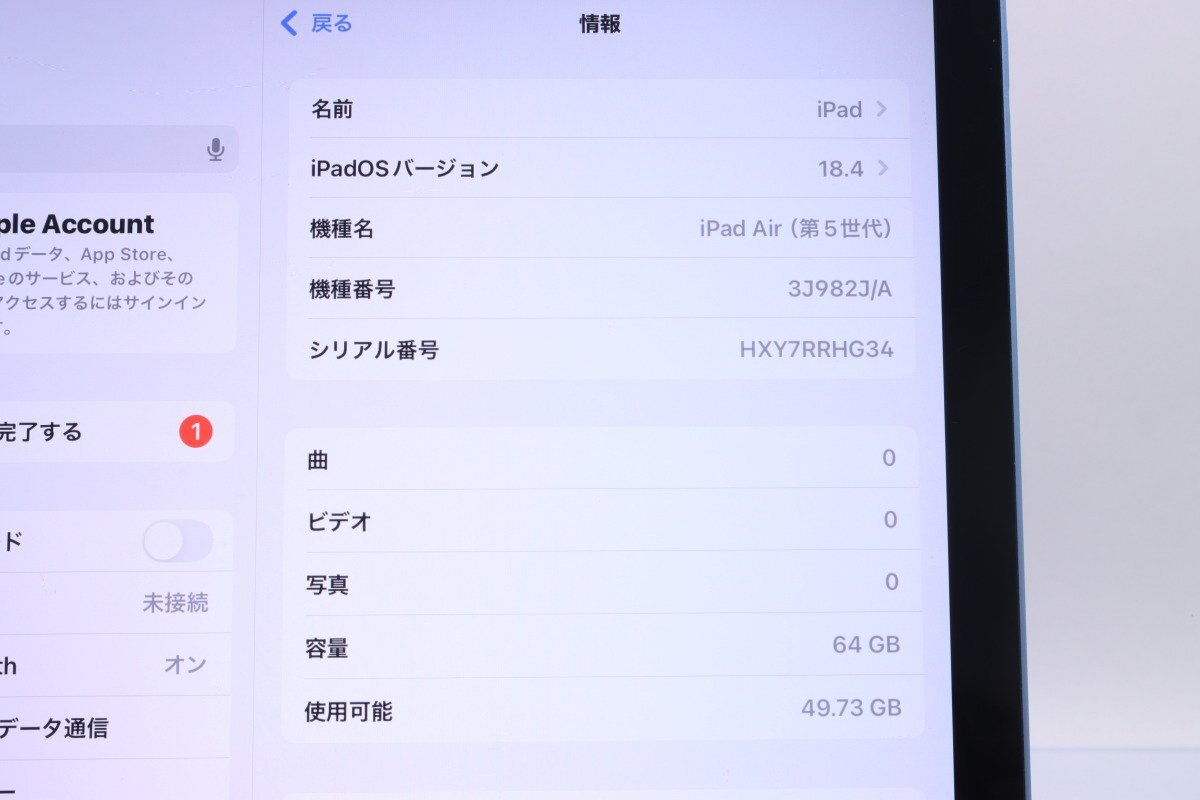 ■機種 : iPad Air 64GB (第5世代) Blue A2589 3J982J/A