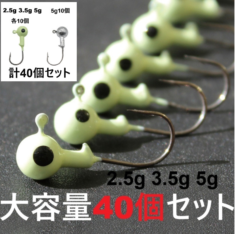 アジングやメバリング、ライトロックにオススメのよく釣れるジグヘッド40個セットです。