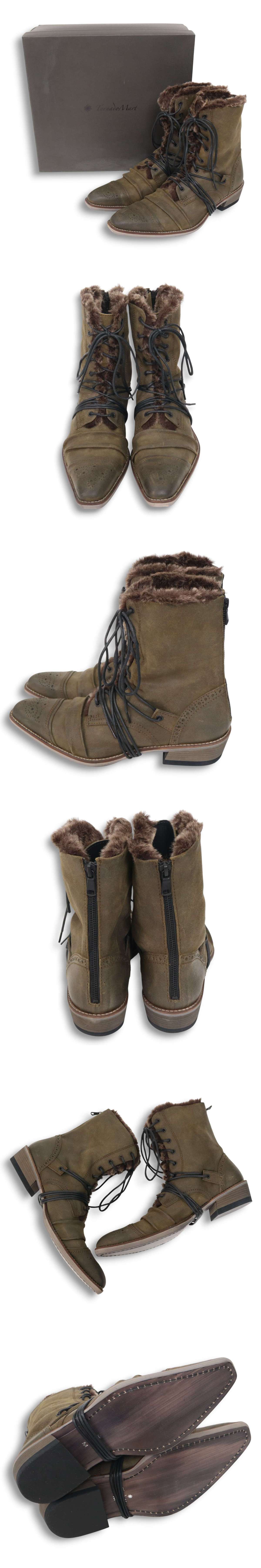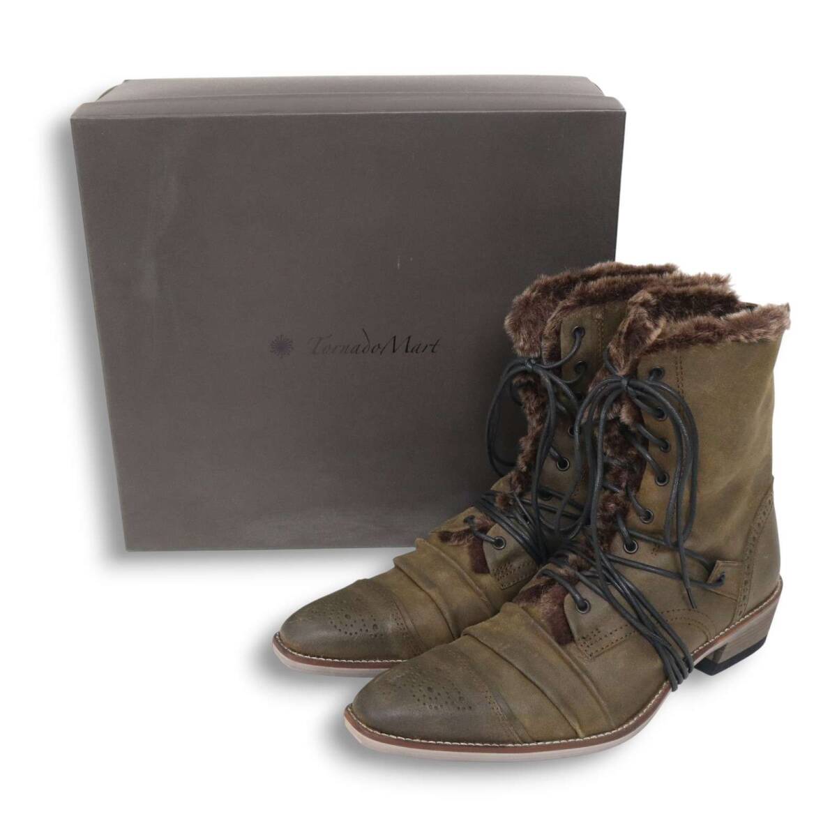 【新品 未使用】 TORNADOMART トルネードマート 秋冬 ファー付★ レースアップ レザー ヒール ブーツ Sz.M メンズ 定価4.7万
