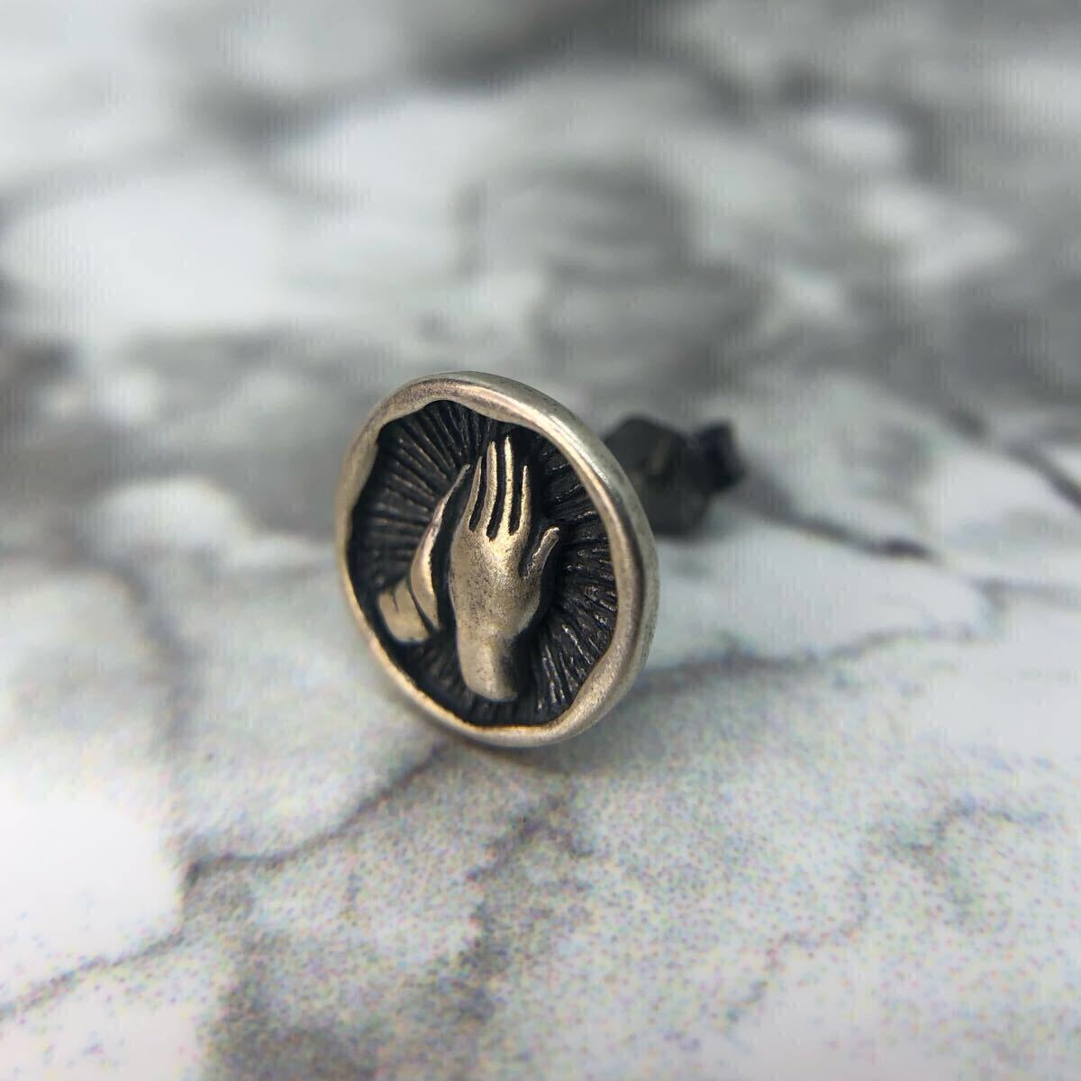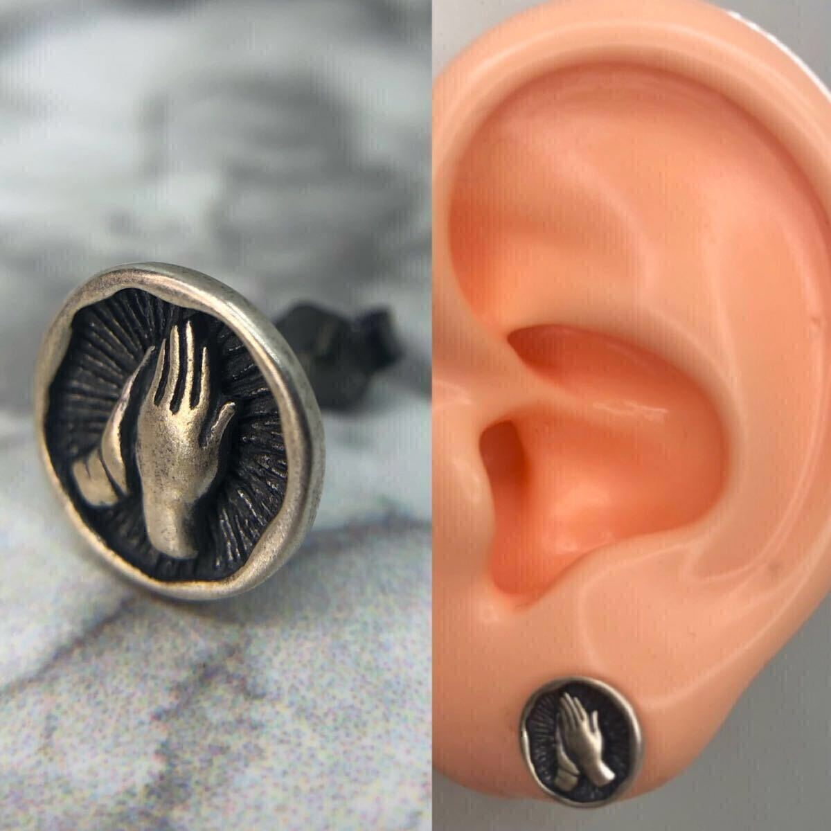 【新品】スタッド ピアス プレイングハンズ 祈り手 シルバー アクセサリー 片耳用 韓国 hiphop メンズ ストリート 18g
