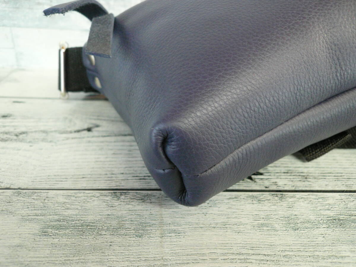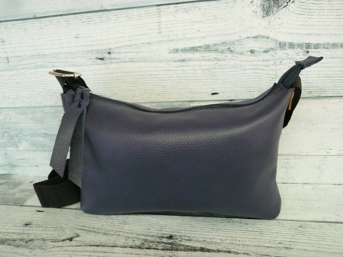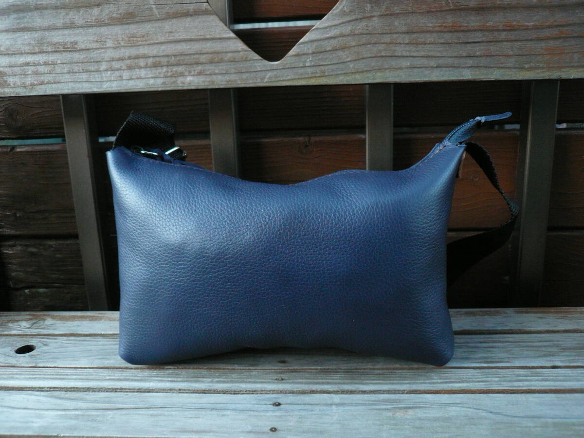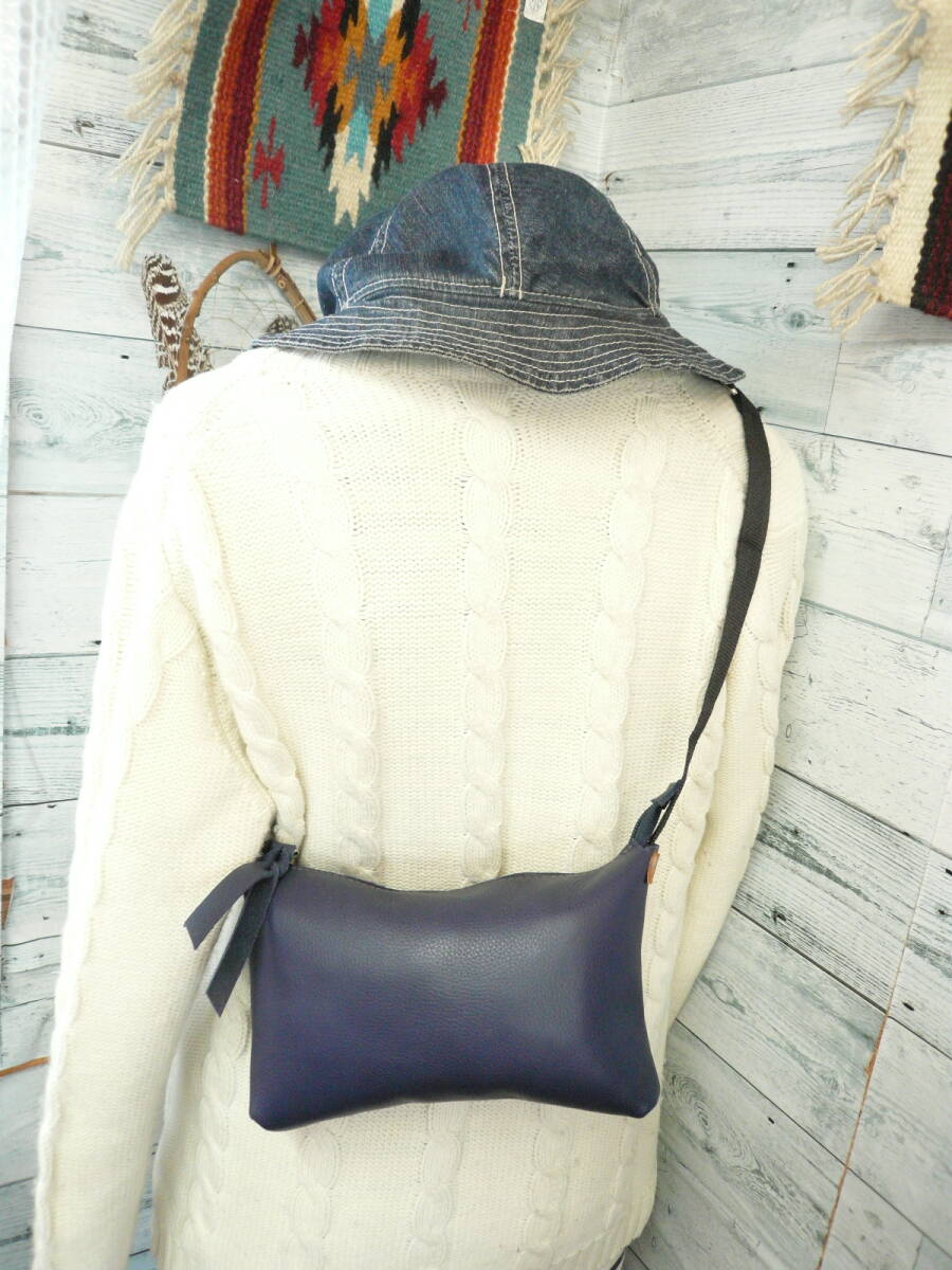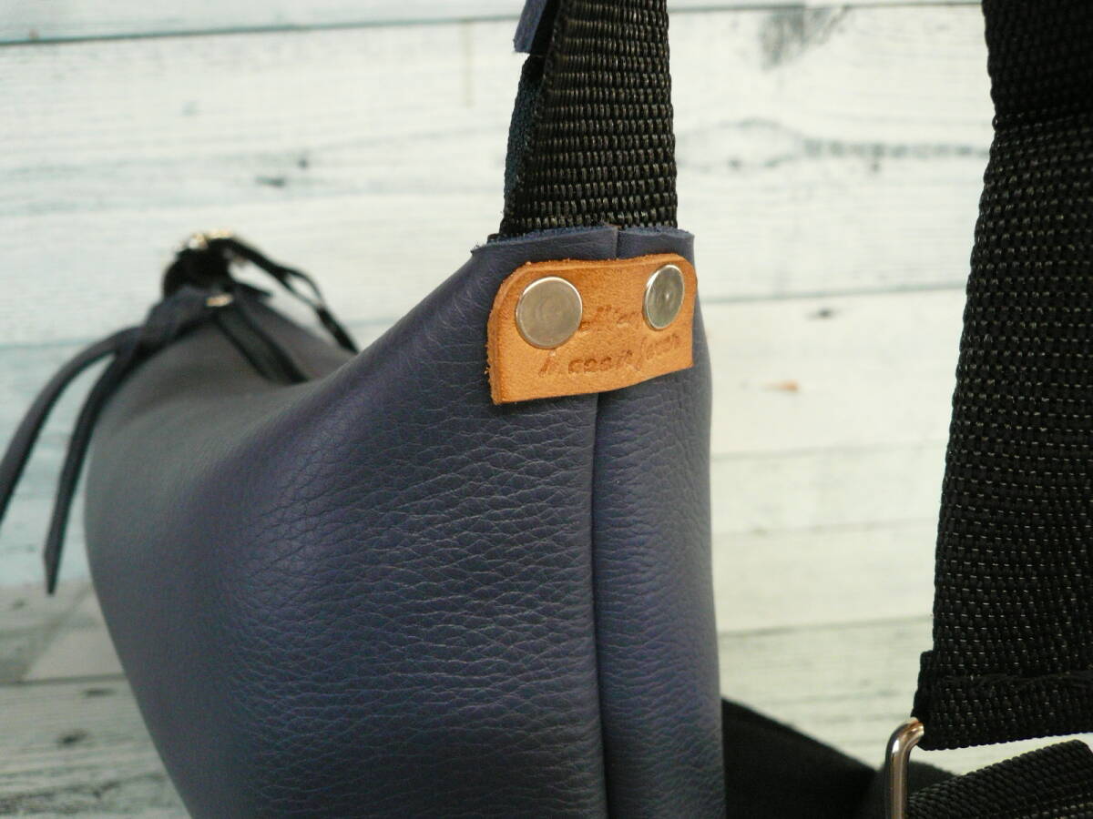 【肉厚しなやか牛革!ショルダーバッグ本革シュリンクレザー】ハンドメイド ネイビーブルー系 作家手作り日本製バッグ MADE IN JAPAN604