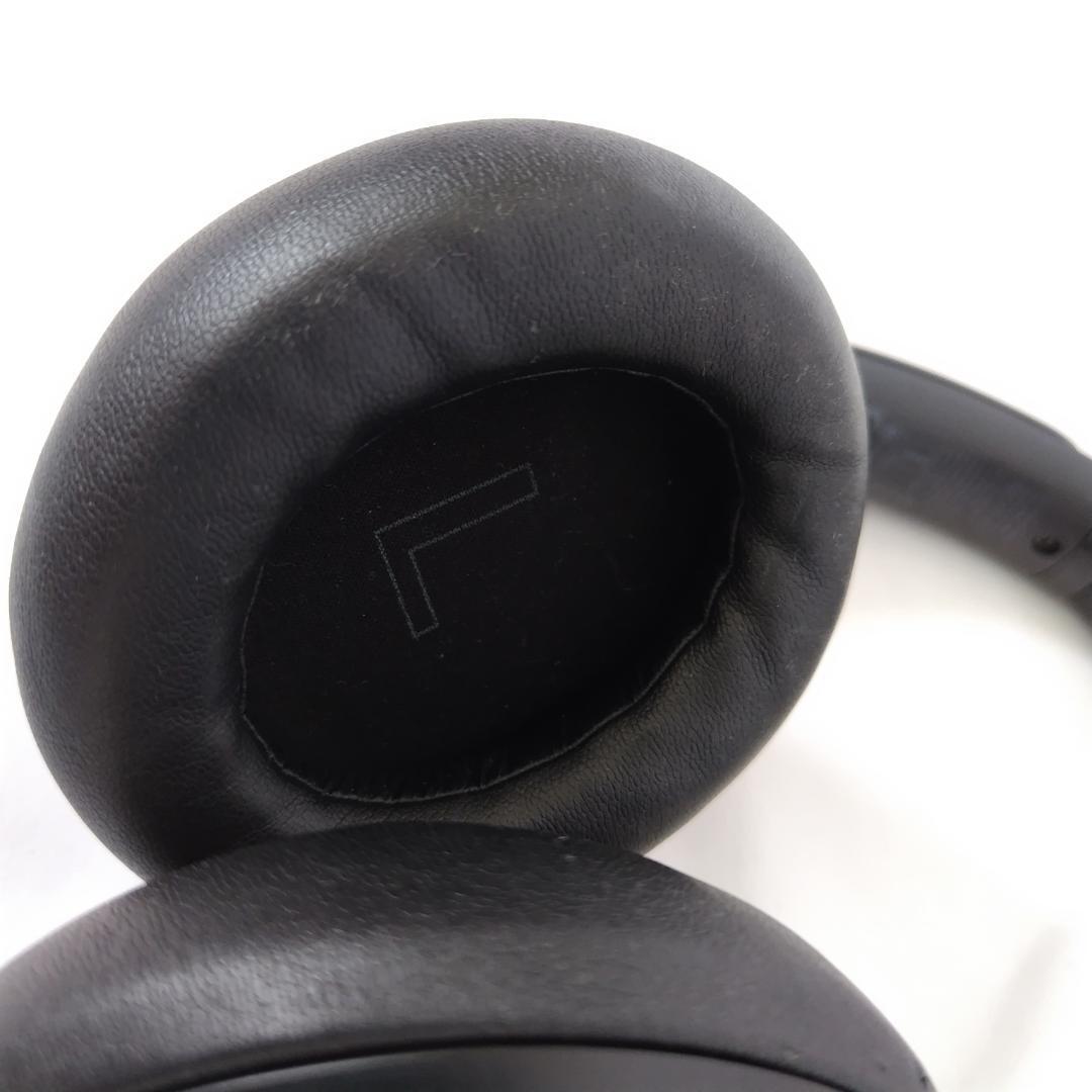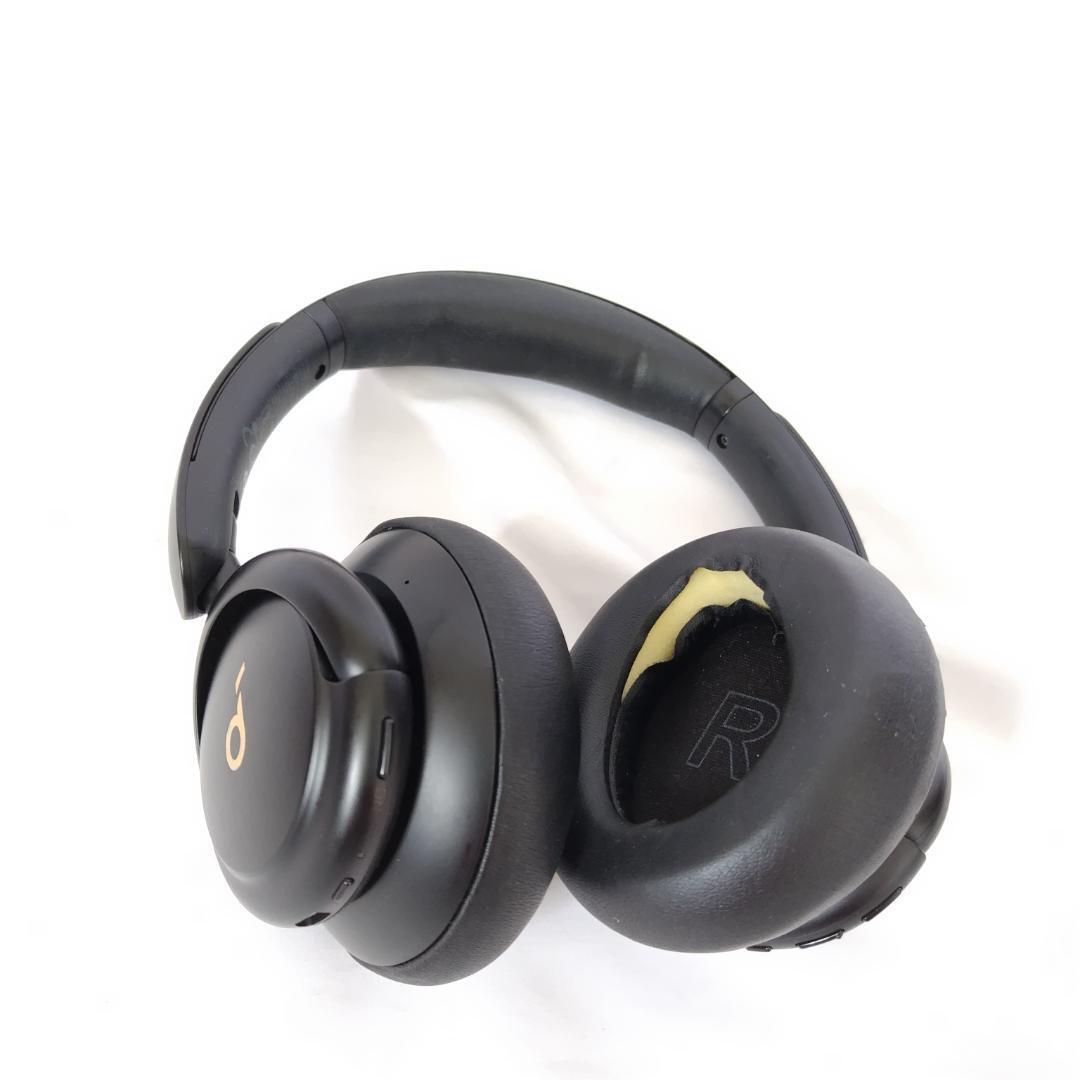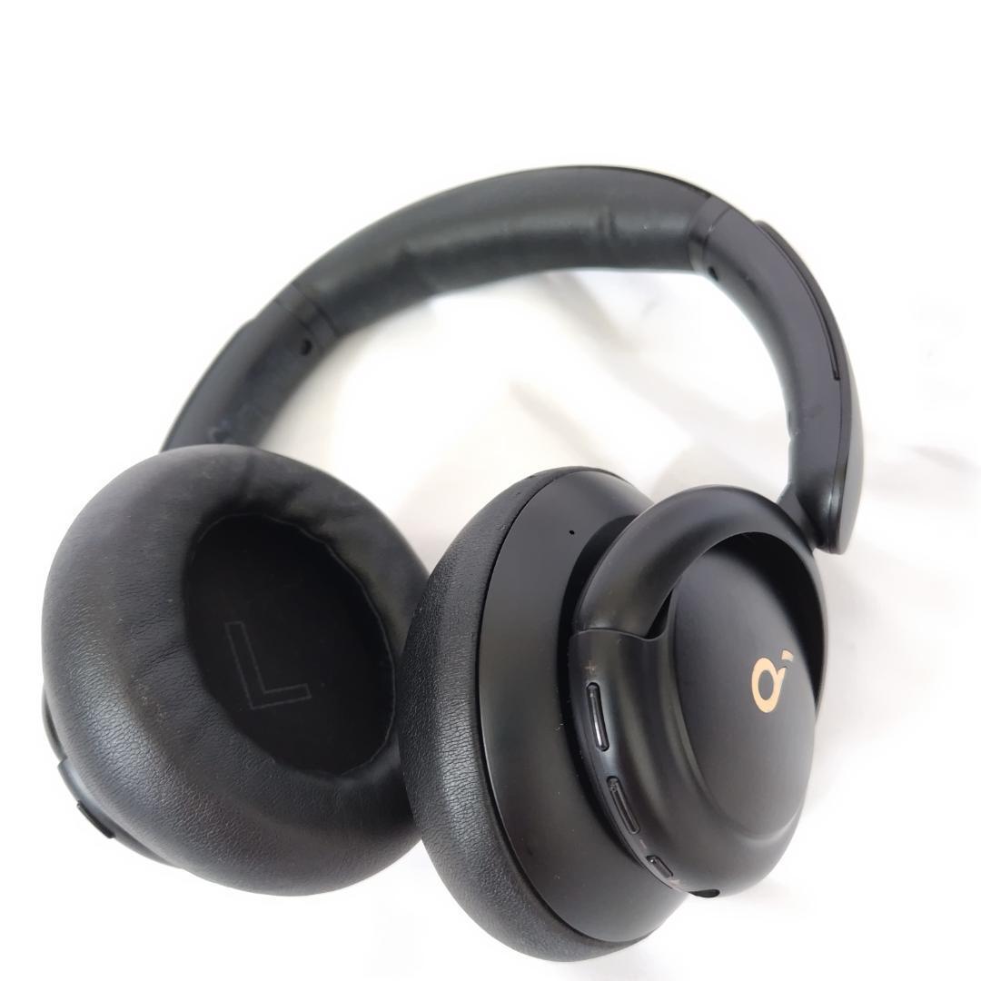 Anker Soundcoreのブラックワイヤレスヘッドホン、レザーイヤーカップ付き。