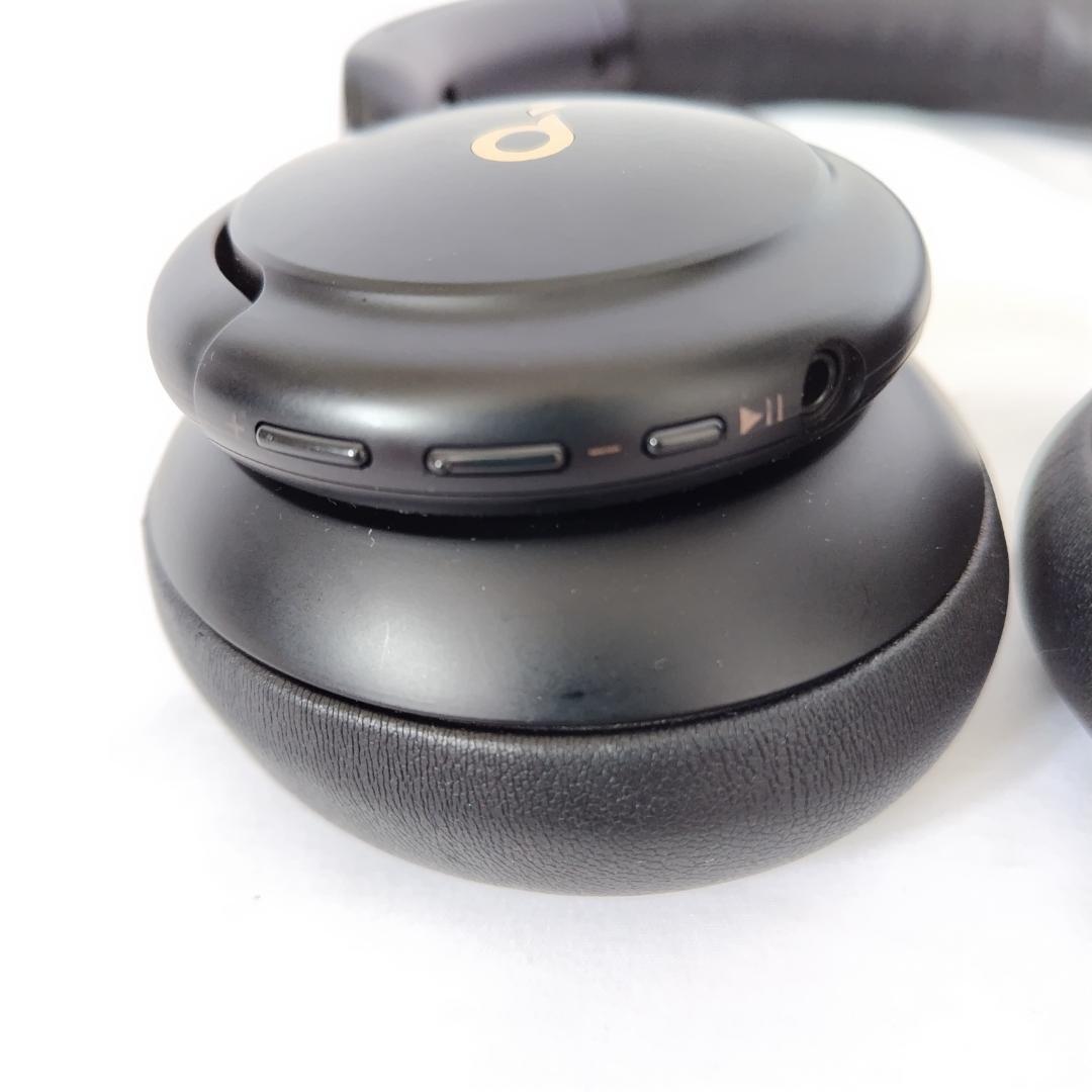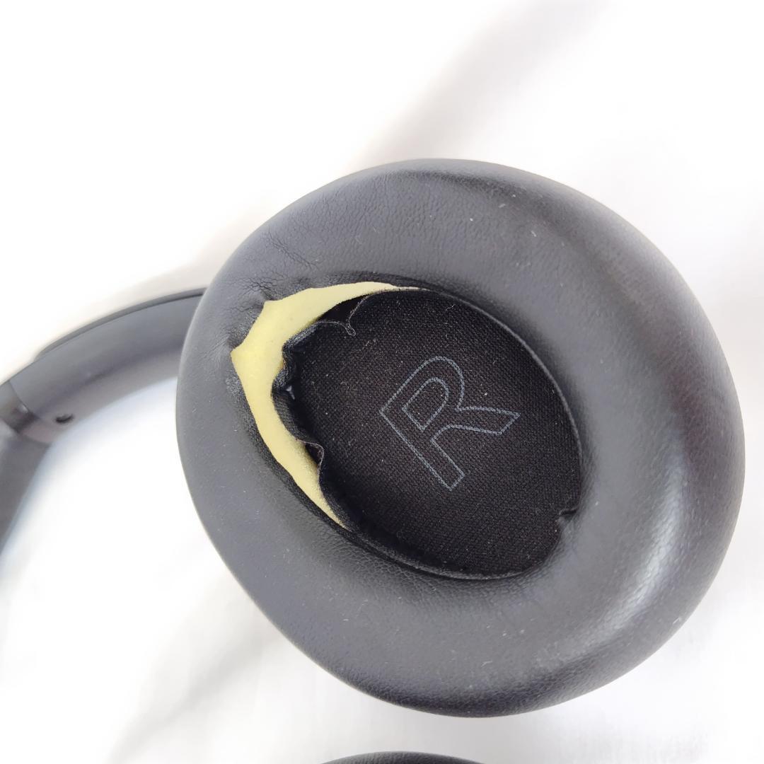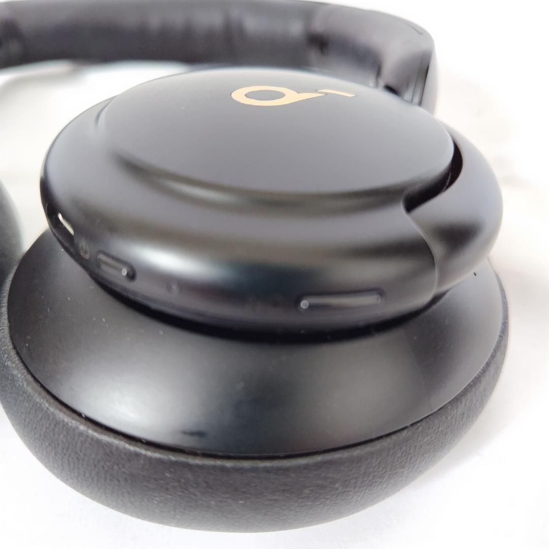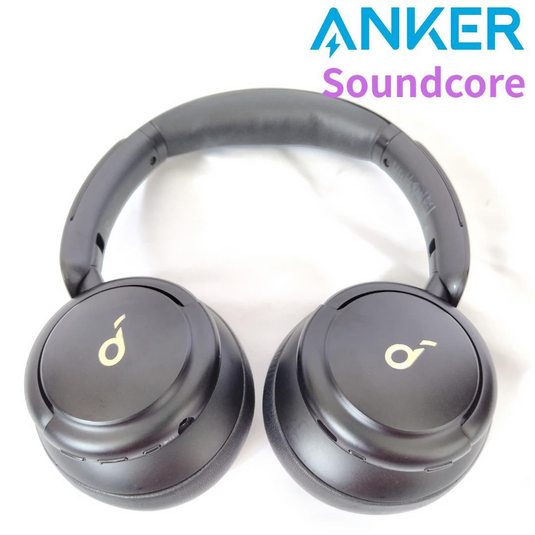 Anker Soundcoreのブラックワイヤレスヘッドホン、レザーイヤーカップ付き。