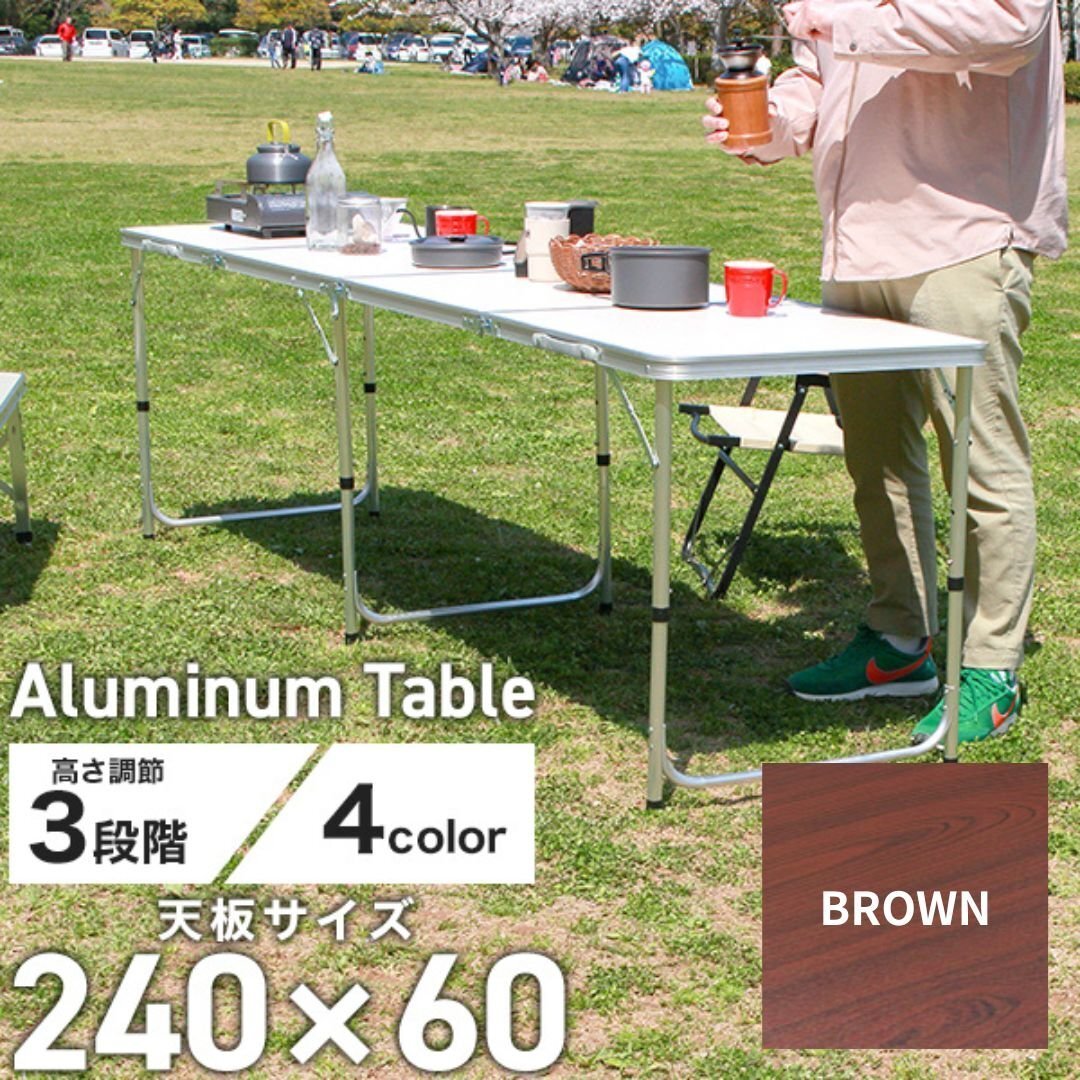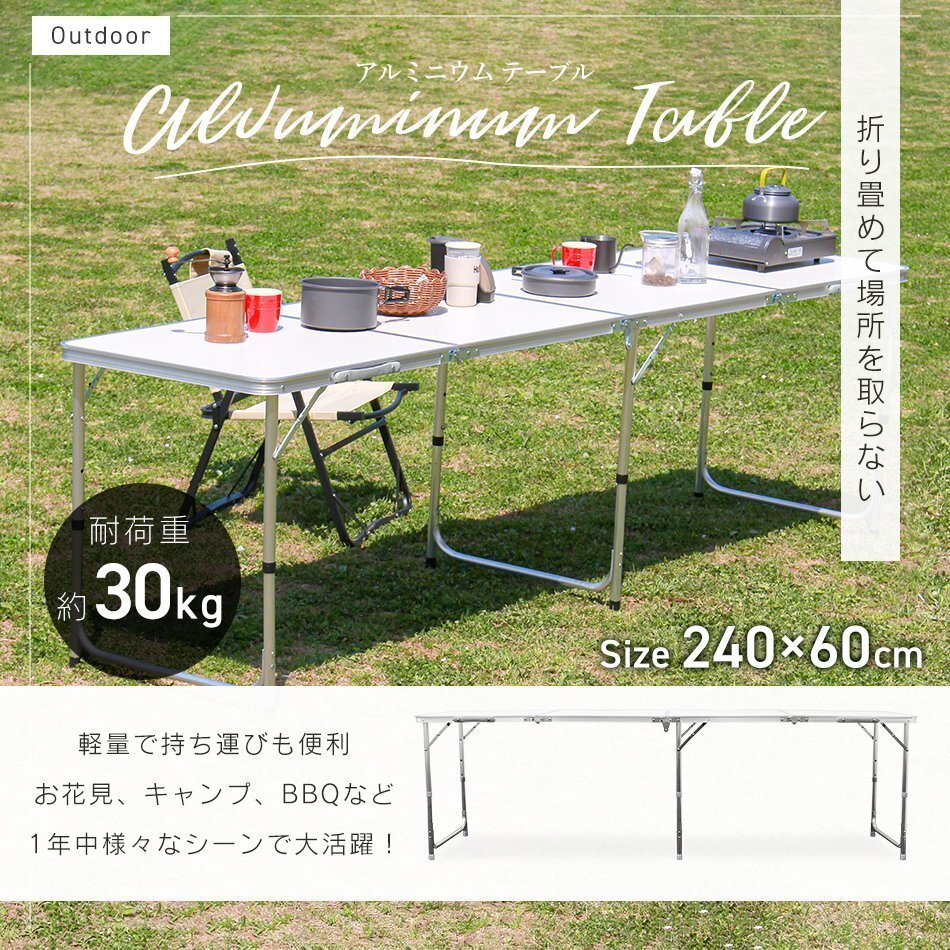 | かんたん組立の折りたたみアウトドアテーブルです。 広々サイズの240cm×60cm!! サビに強いアルミを使用! 天板には防水加工が施されています。 必要のない時は折りたたんで収納できる!! 取っ手付きで持ち運びもラクラク♪ 高さは「ハイスタイル」「ミドルスタイル」「ロースタイル」の3段階調節。 お好みや用途に合わせて使い分けることができる嬉しい仕様♪ キャンプ、バーベキュー、お花見などにとても便利! ■商品コード:A61002 ■商品仕様 カラー:ブラウン テーブルサイズ(約):幅240cm×奥行60cm×高さ55cm/62cm/70cm(※高さ3段階調節) 収納サイズ(約):60cm×60cm×13cm 耐荷重(約):30kg 重量(約):9.5kg 材質:アルミニウム 他 ■注意事項 ・初めてご使用の場合、耐久性を高めるために天板がフラットにならず山なりになっております。 適度な力で上から押していただくと改善されますので、お試しください。初期不良ではございません。 ・海外製品で、簡易梱包での輸入のため風防に擦れや多少の小キズなどがある場合がございますが、 商品自体には問題ありませんのでご了承下さい。 ・商品は、モニターによって色合いが異なって見える場合があります。 ・仕様・デザインは改良のため予告なく変更することがあります。 ■保障期間 7日間 ※商品到着後7日以内の初期不良・破損のみご対応させていただきます。 【新品未使用品です】 |