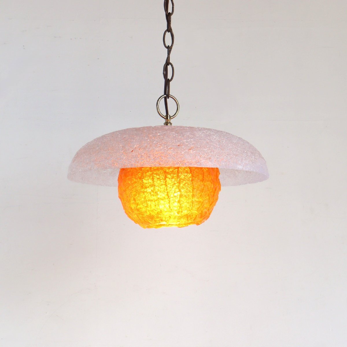 | 商品説明 explanation | 推定1950年~60年代頃のヴィンテージ スパゲティ ペンダントランプです。 その名の通り、スパゲティのようにアクリル樹脂が渦巻いたデザインされた、ミッドセンチュリー期の代表的なインテリアです。 アメリカ現地でも希少価値が高く、独特の雰囲気でお部屋のアクセントになります。 ご家庭のインテリア、店舗什器にいかがでしょうか。 |