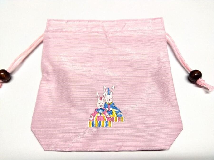 桃の節句 巾着 小物入れ お雛様 兎雛 うさぎ 刺繍 919 ggp