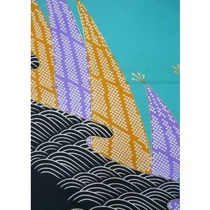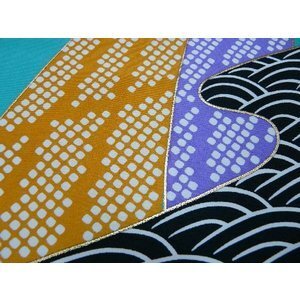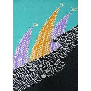 鮮やかな緑色に流れる波の模様と、高く伸びる植物の模様が素敵です。