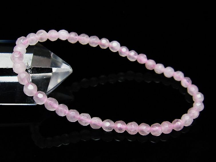 | ■商品名: ローズクォーツブレスレット ■商品ID: T446-2205 ■商品重量:約 4.2g ■商品サイズ:内周約:151mm(±5mm)粒直径約:4mm(±0.5mm) 【ローズクォーツ(紅石英)】 ローズクォーツは柔らかい優しいピンクの水晶です。アルミニウムや酸化チタンなどの結晶を含むためにピンク色になると考えられています。これらの微細な結晶が分散しているため、石全体の透明度が低く、濁っていたりひびがあります。高品質の透き通ったものや、スター効果が確認できるものは珍重されています。 この石は愛や優しさ、内面美を象徴する石です。ローズクォーツと言うと「恋愛運アップ!」といったイメージが一般的ではないでしょうか。 ローズクォーツは持ち主の内面の美を高め、女性の幸せや喜び、愛を呼び起こしてくれるとされています。また過去の傷ついた経験から、ついネガティブ思考になったり自分に対してマイナス思考になったりするような、負の感情を優しさで包み込み癒し、自分を許し愛せるようになるそうです。 この石は目当ての異性を連れてくるというよりは、内面的に美しくなり自分を良い意味で大切にする自己愛を知ることにより他者から愛されるという効果のようです。例えば自分なんか大嫌い、自分なんかどうせ、と思っている時に、他人から愛されるでしょうか。それよりも自分を認めて受け入れ、愛していると内面が輝いて魅力が溢れます。その魅力により周囲の人から愛され、他人から愛されることにより一層他人を愛せるようになるという、愛を呼び込む循環を造ってくれるそうです。 そういった意味で、実は恋愛運アップというよりはもっと定義の広い愛情運アップの効果があるとされています。 こういった広い意味での愛を得ることができるとされ、人に対して思いやりを持ち許せるようになることから、人間関係の改善や、苦手だけれどどうしても付き合わなければならない人がいるといった場合でも活躍してくれることでしょう。 【水晶(石英、クリスタルクォーツ)】 水晶とは石英を指しますが、一般的に無色透明のものをクリアクォーツやロッククリスタルと呼んでいます。 水のように美しく透き通ったものが良いと思われがちですが、内部にヒビや他の鉱物などのインクルージョン(内包物)が入っているものがあり、それが天然物の証。また、インクルージョンによって様々な種類に分類され、それぞれ違った印象を与えてくれます。 古くから呪い事に使われてきた水晶に秘められたパワーはとても万能で、あらゆる場面に対応するといわれています。特に邪気を祓う力が強いため、人間関係を円滑にしたり、心身をクリアな状態にしたい場合に最適です。また空間を浄化する作用もあるとされ、インテリアとしても高い人気を誇っています。 石自体に強い自浄作用があり、他のパワーストーンが吸収した負のエネルギーを浄化するといわれています。更にアクセサリーとして他の石と組み合わせる場合、それぞれの石の個性を引き出しバランスを取ってくれる効果があるそうなので、ぜひとも組み込んでおきたいですね。 パワーストーン入門に最適な水晶ですが、愛好家にとってはかなり奥が深く最後に行き着くのもこの石なんだそうです。何もかもを見透かすような透明な水晶には、本当に神秘的なパワーが宿っているのかもしれません。 |