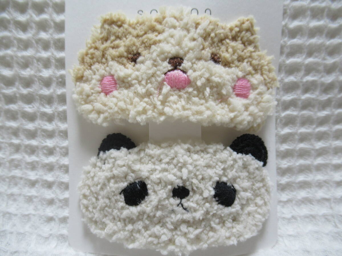 ボア系の生地(犬・パンダ) シルバースリーピン 2点セット