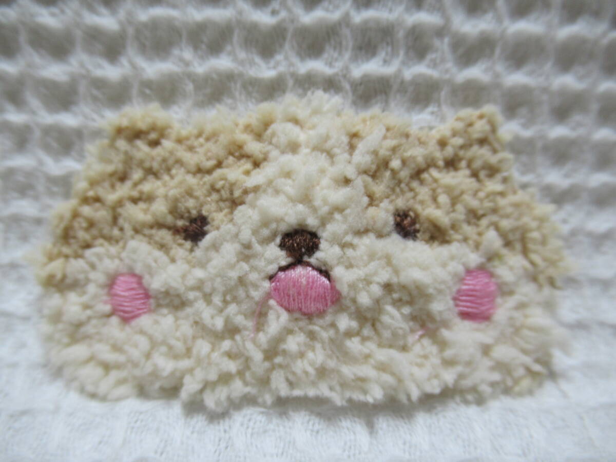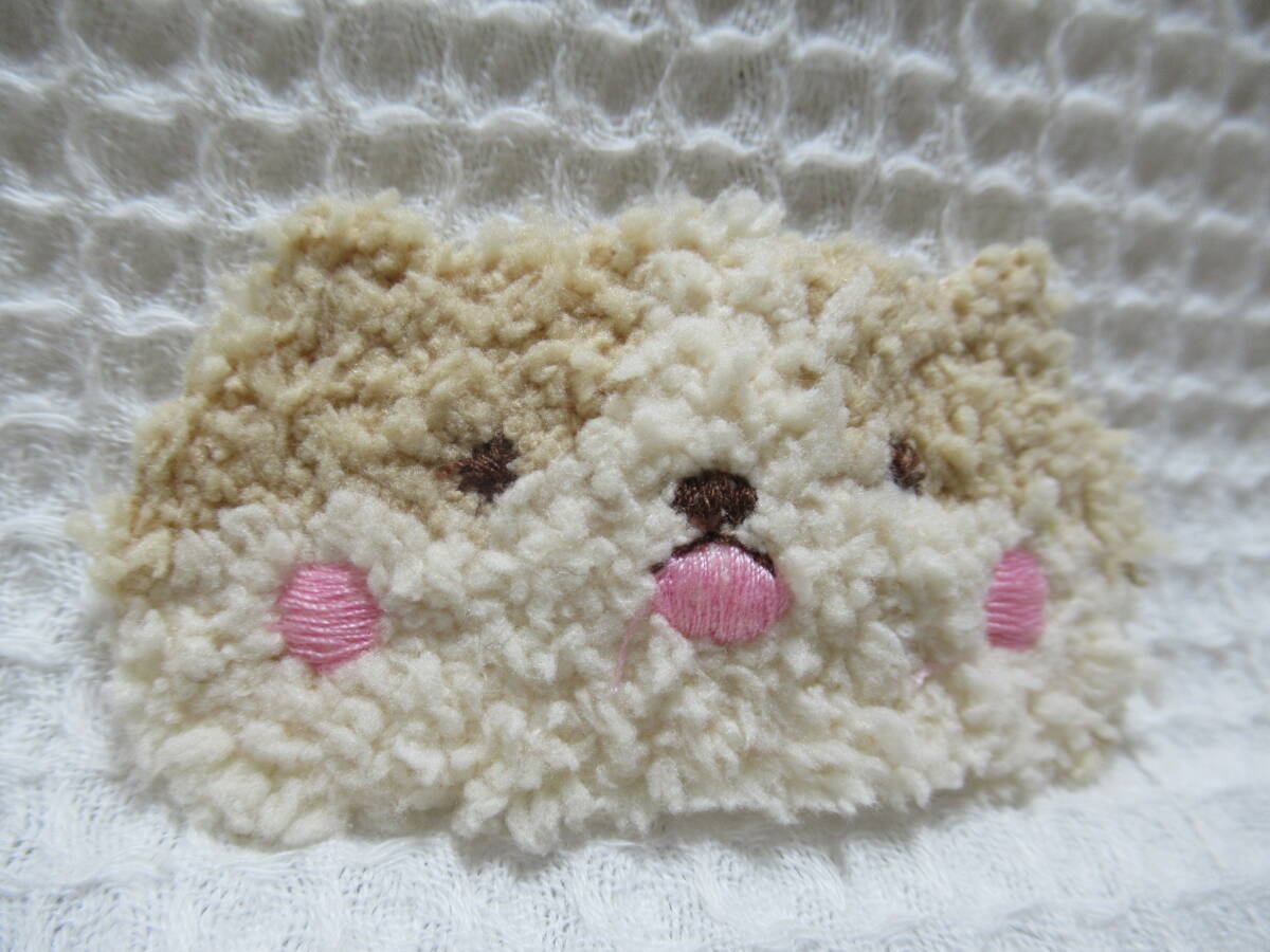 ベージュ系の濃淡色ボア系の生地のイヌ