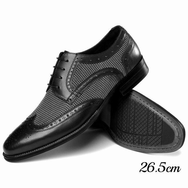 ビジネスシューズ メンズシューズ シューズ イギリス風 靴 千鳥柄 フォーマル  紳士靴  イギリス風 ブラック 26.5cm