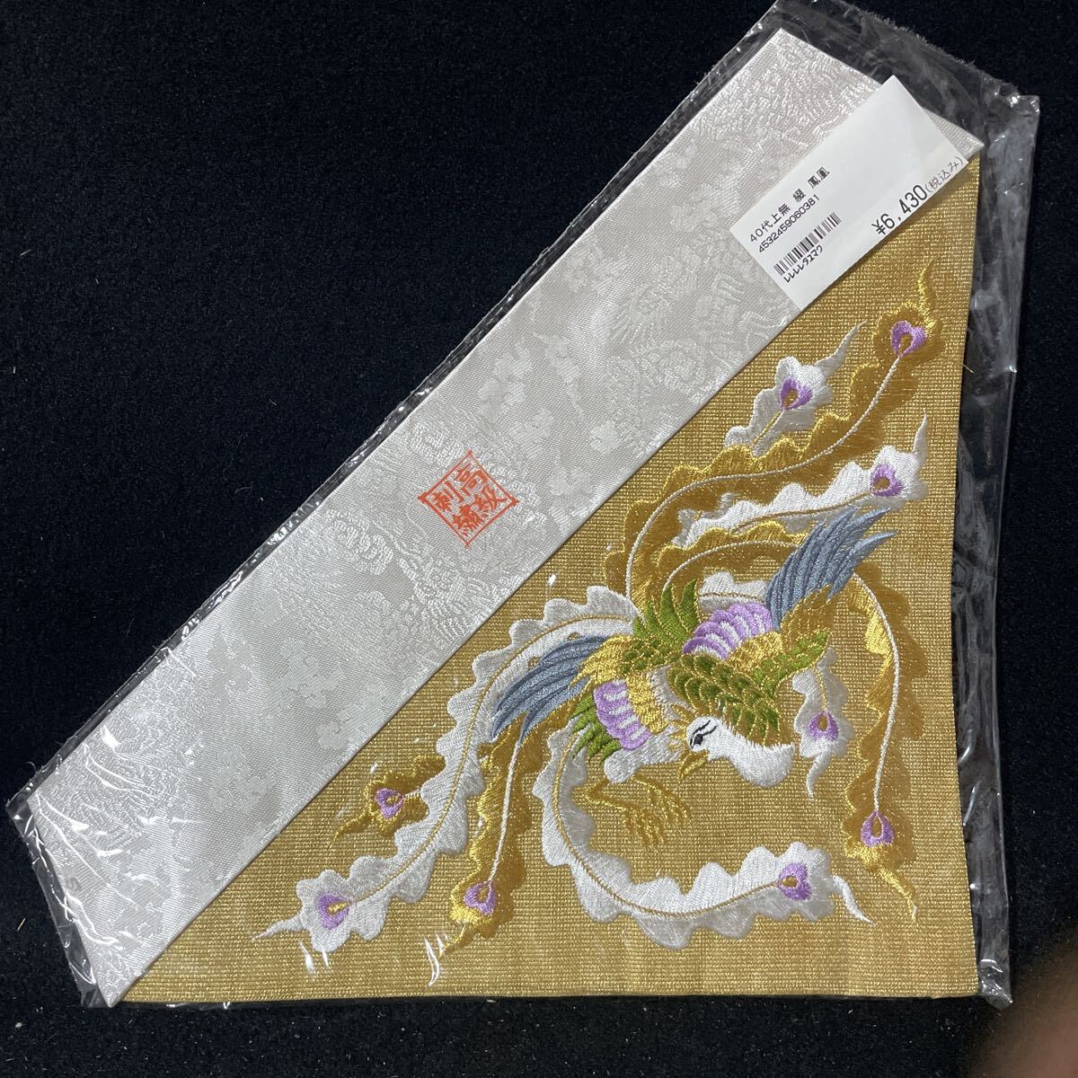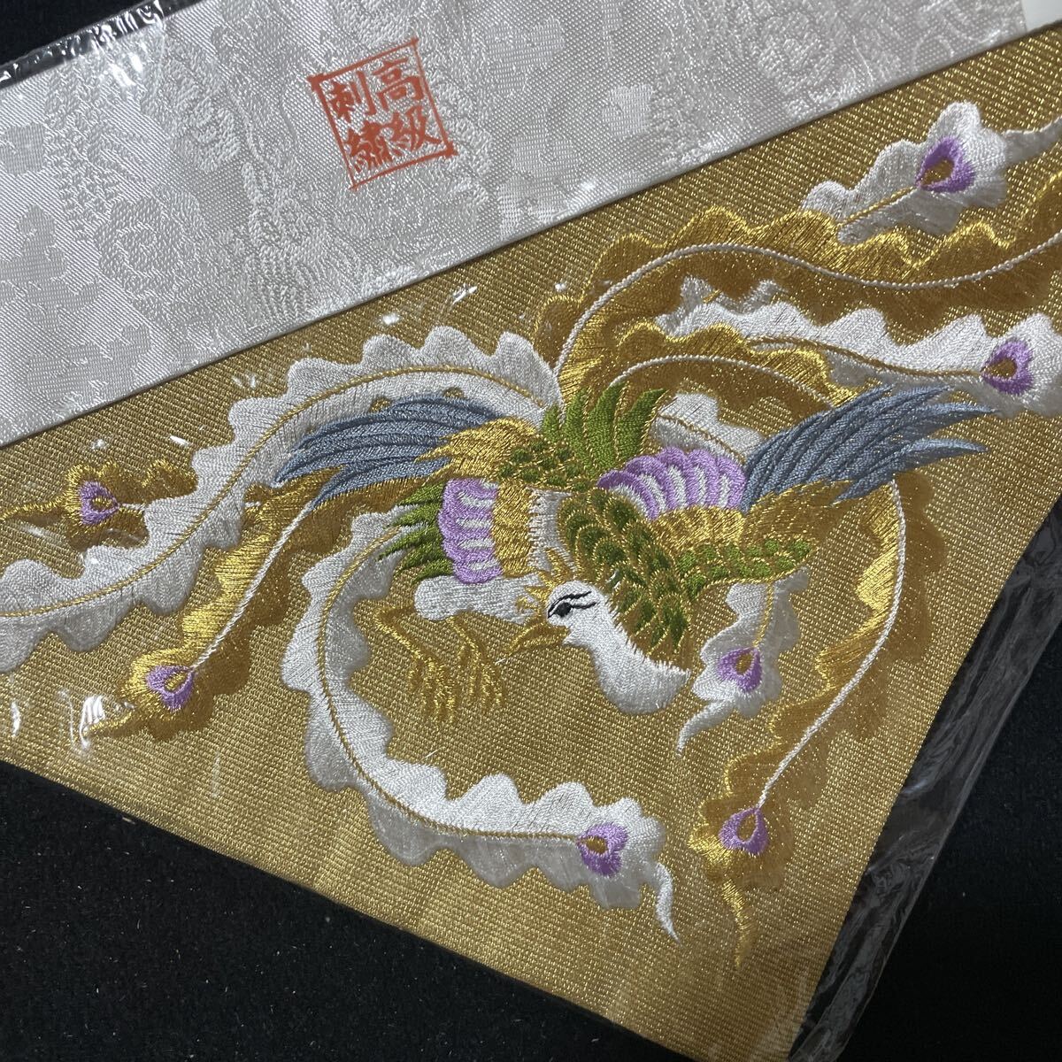 未使用 未開封 正絹 仏具 打敷 敷物 仏壇飾り 三角 正絹経上金別織 送料一律430円 金絲 経机 三角打敷 40代 高級刺繍 鳳凰