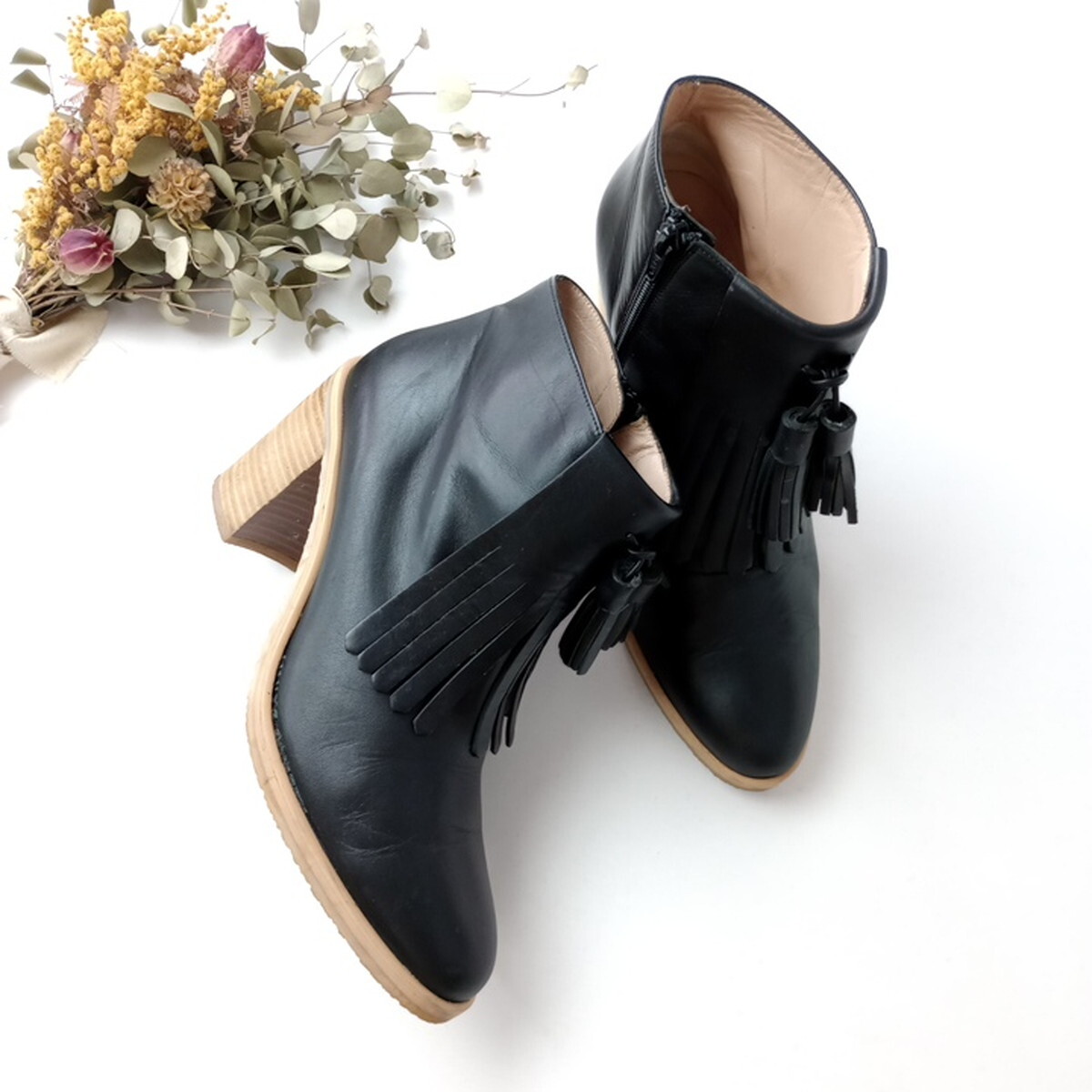 PELLICO SUNNY ペリーコサニー「きっと、足元を凛と引き締めてくれる。」タッセル ヒール レザー ブーツ 38 ブラック(38M+1790)