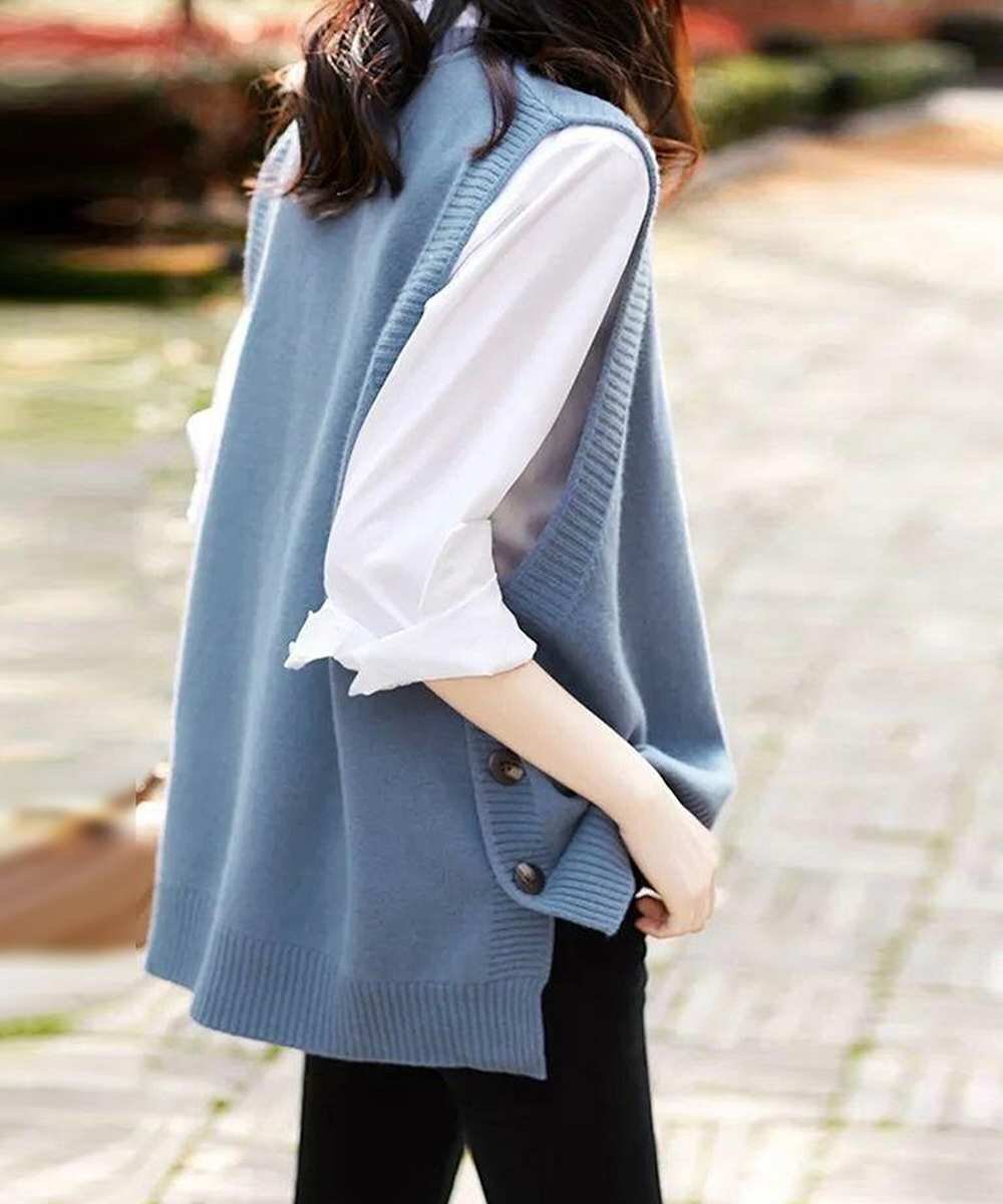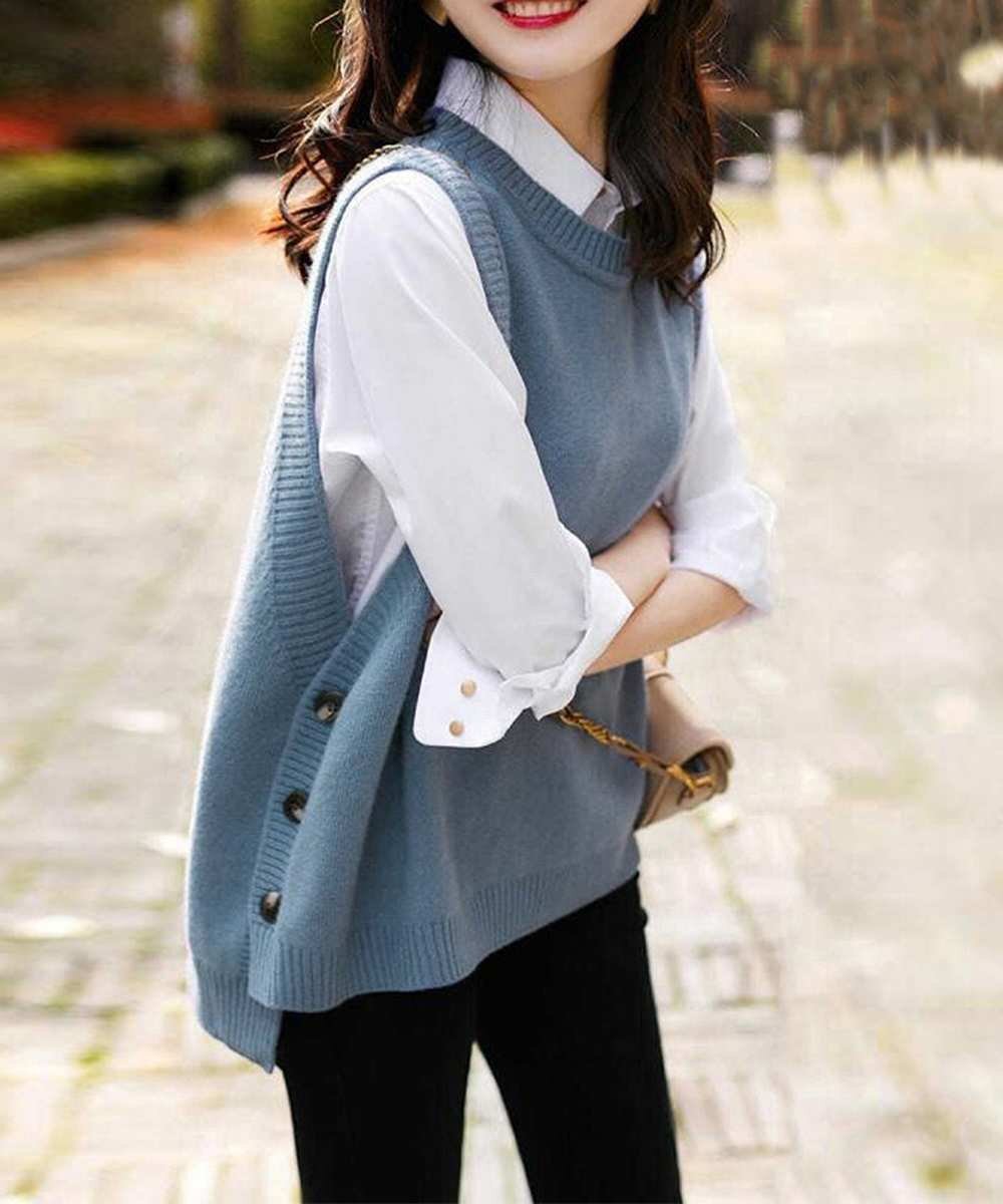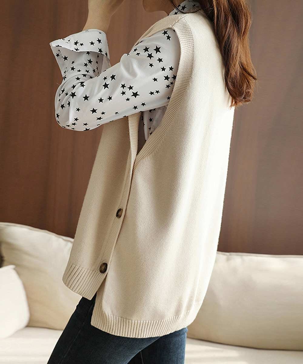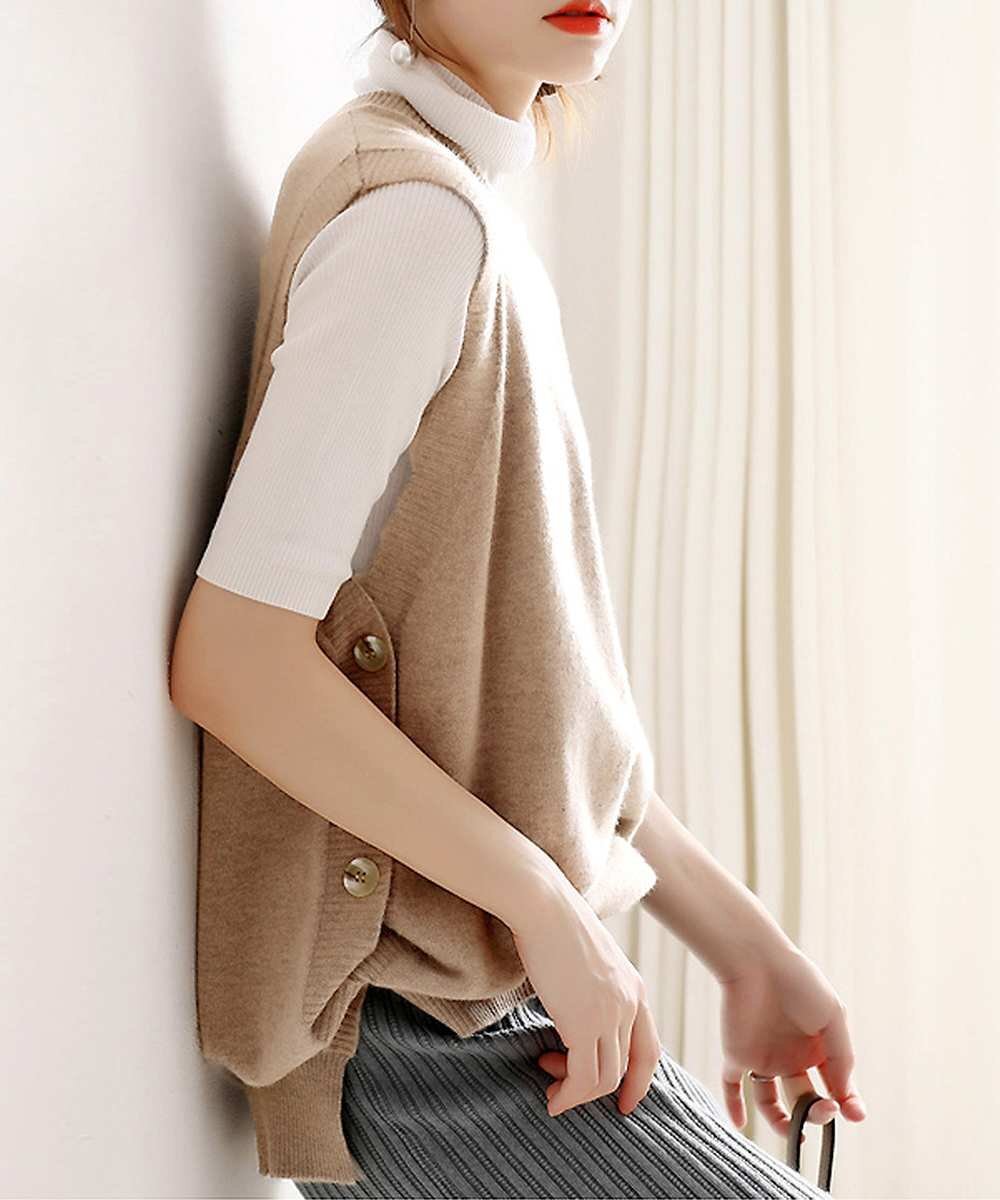 コーディネートにこなれ感をプラスしてくれるラウンドネックニットベストです。