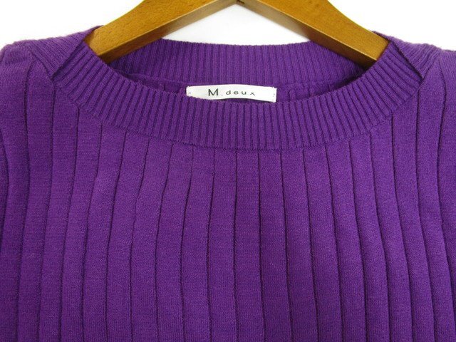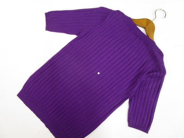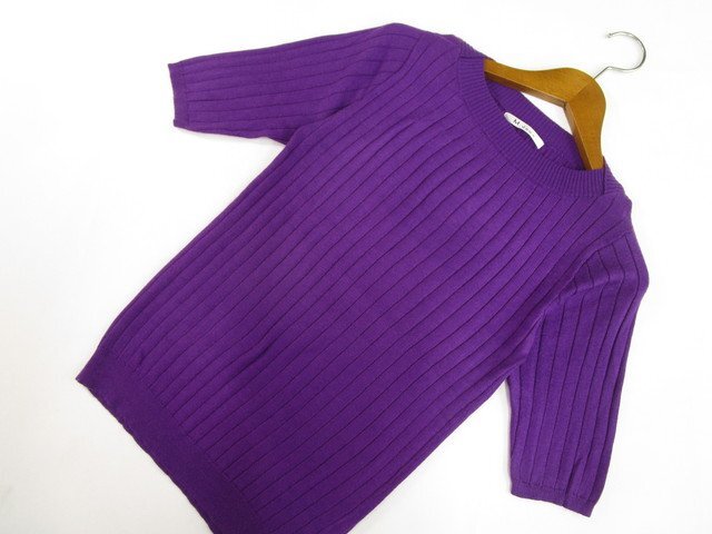 五分袖 ファネルネック ニットカットソー F パープル 【メール便可】