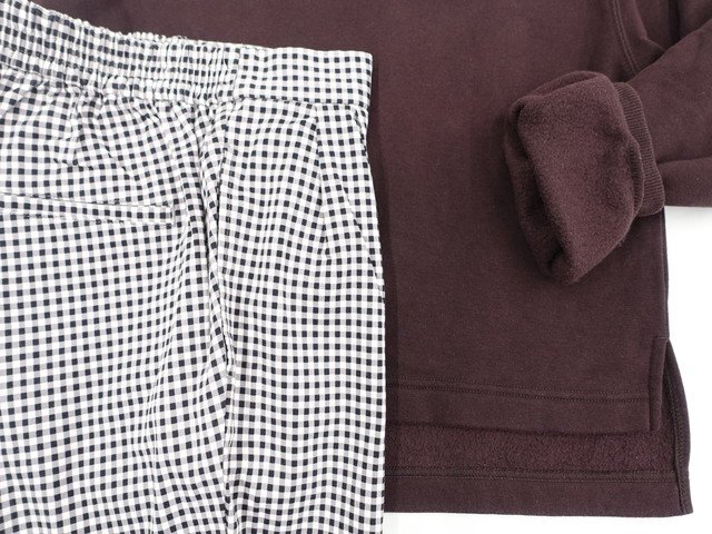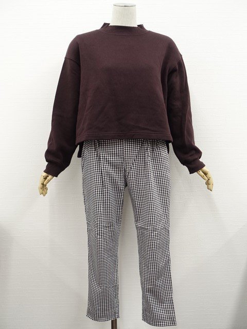 洗える長袖トレーナー+テーパードパンツ コーディネート上下2点セット M相当 ブラウン/ブラック×グレー×ホワイト ギンガムチェック柄 カジュアル系 30代~40代