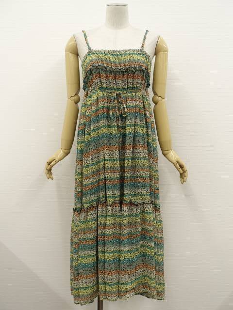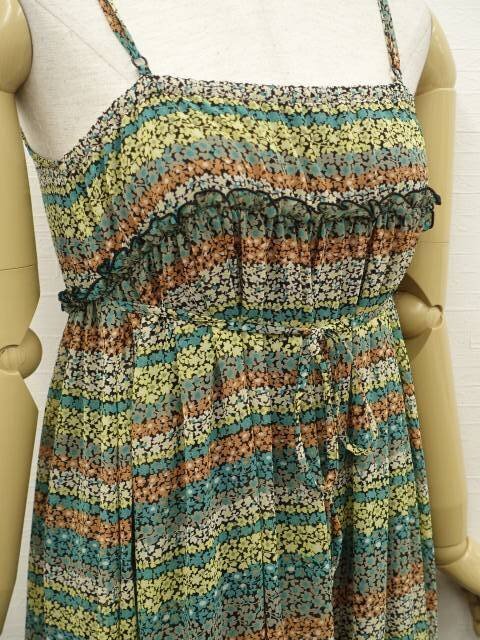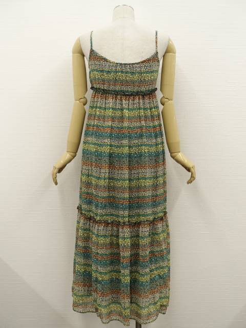 ロング丈 シフォンキャミソールワンピース M ブラック地 イエロー×オレンジ×グリーン×グレー 花柄
