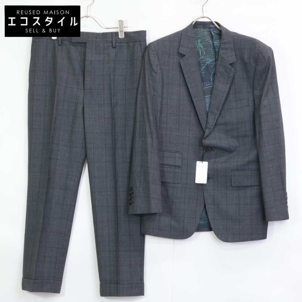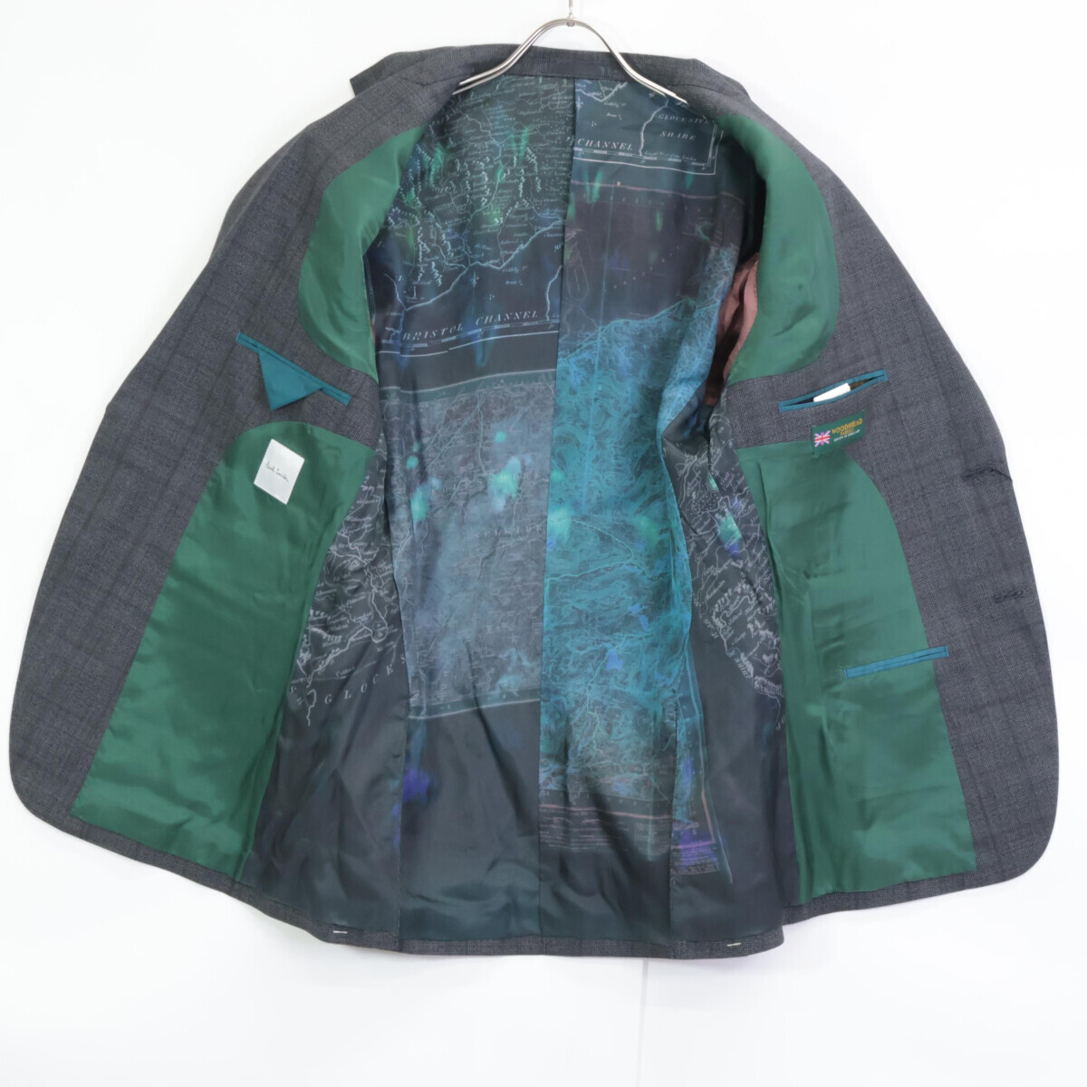 PaulSmith ポールスミス 123880 グレンチェック 裏地プリント セットアップ グレー チェック L スーツ セットアップ ウール メンズ 中古