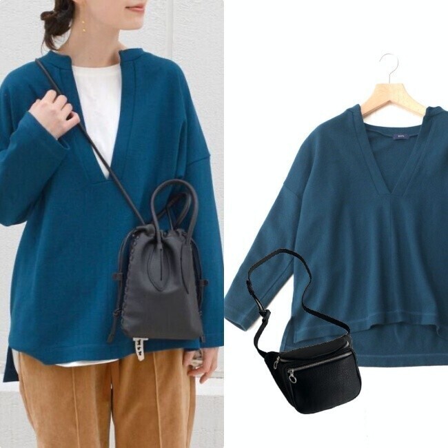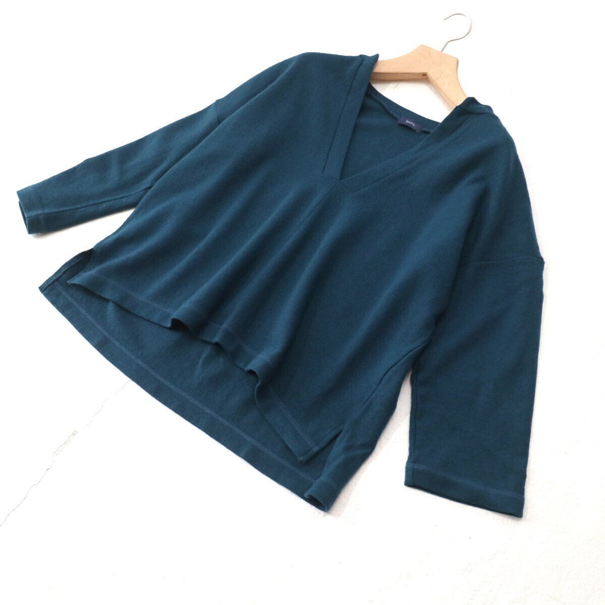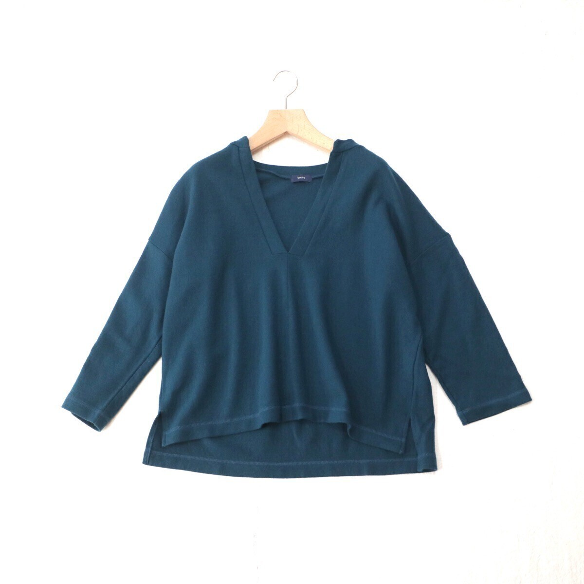 ウール圧縮素材を使用した深いVネックのプルオーバーです。
