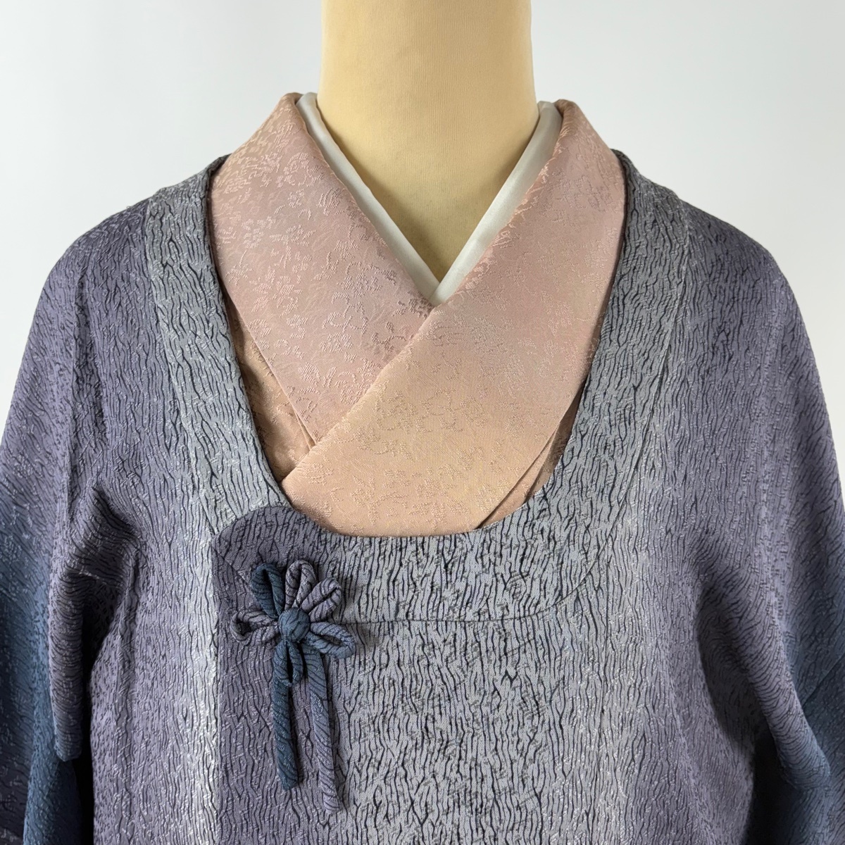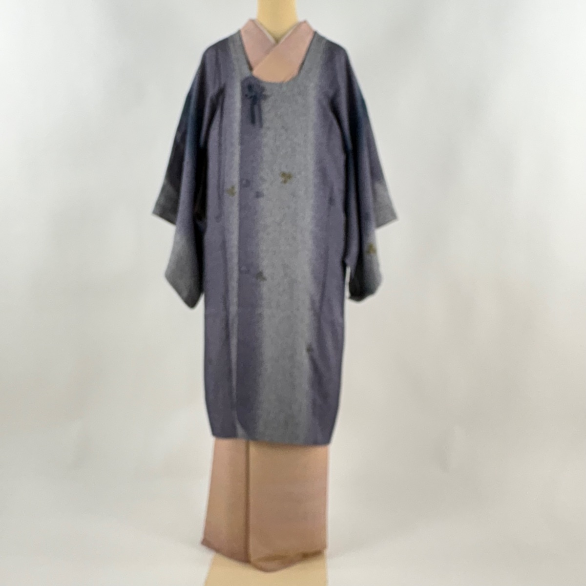 | 道行 美品 名品 和装コート 都衿 葉 幾何学模様 染め分け 絞り 灰紫 身丈104 裄丈63 S 正絹 【中古】 |