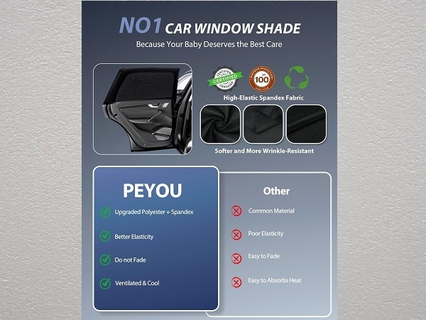 PEYOU 車用 サンシェード 2パック 114cm x 48cm 未使用 ブラック通気 伸縮性 防虫ネット プライバシー保護 紫外線防止 日除け 収納袋付