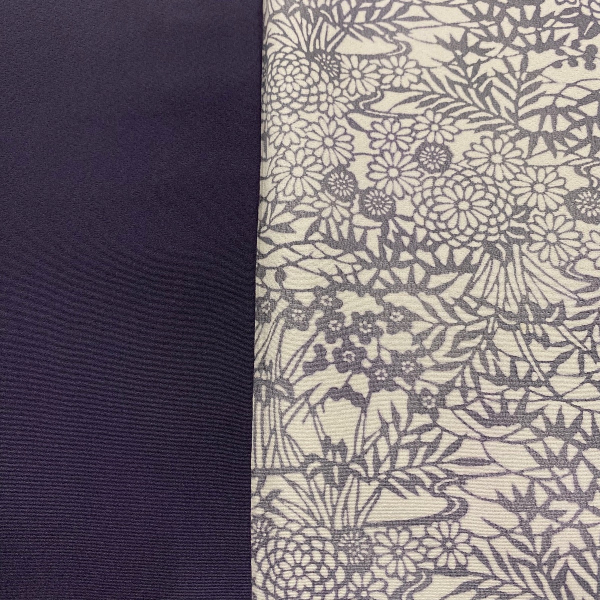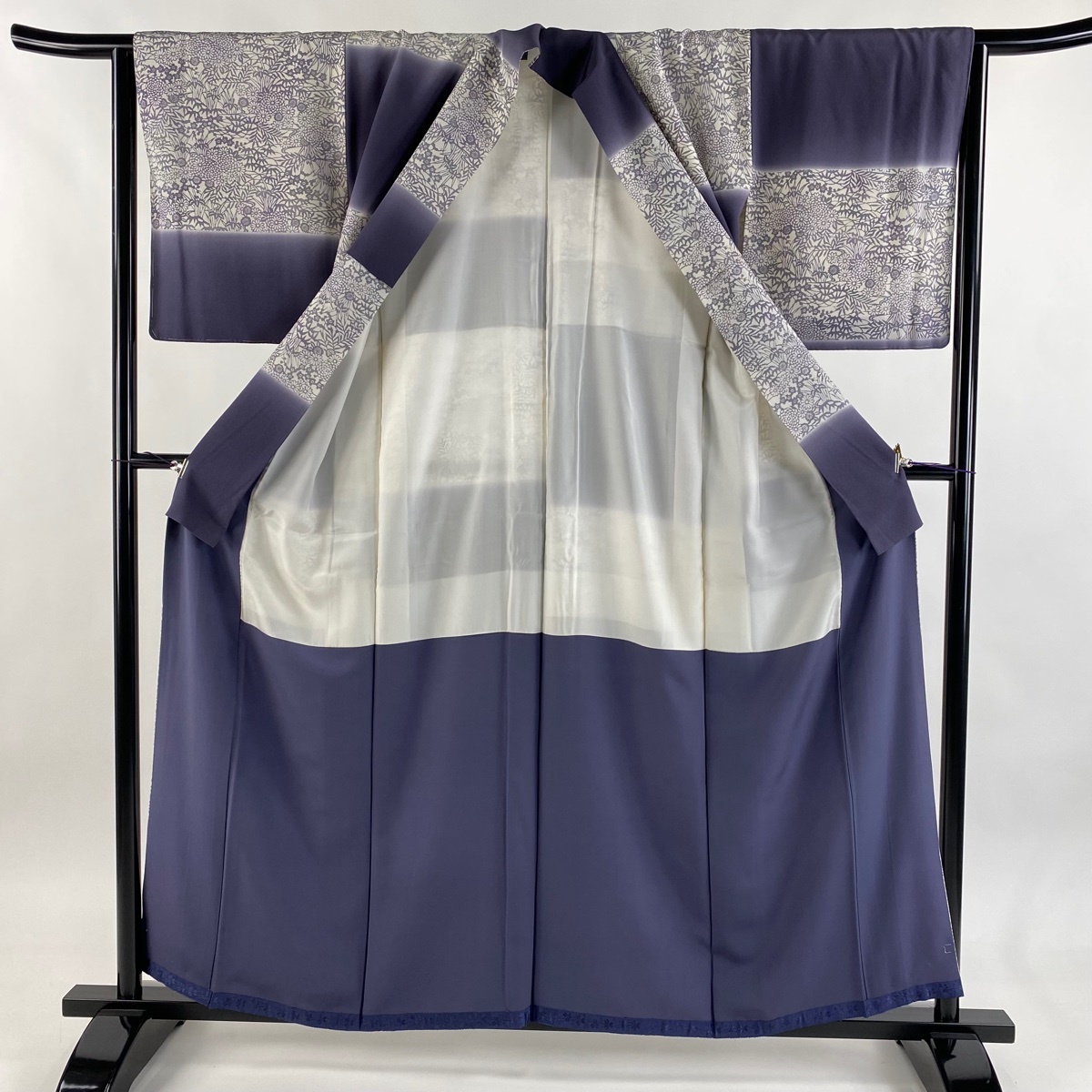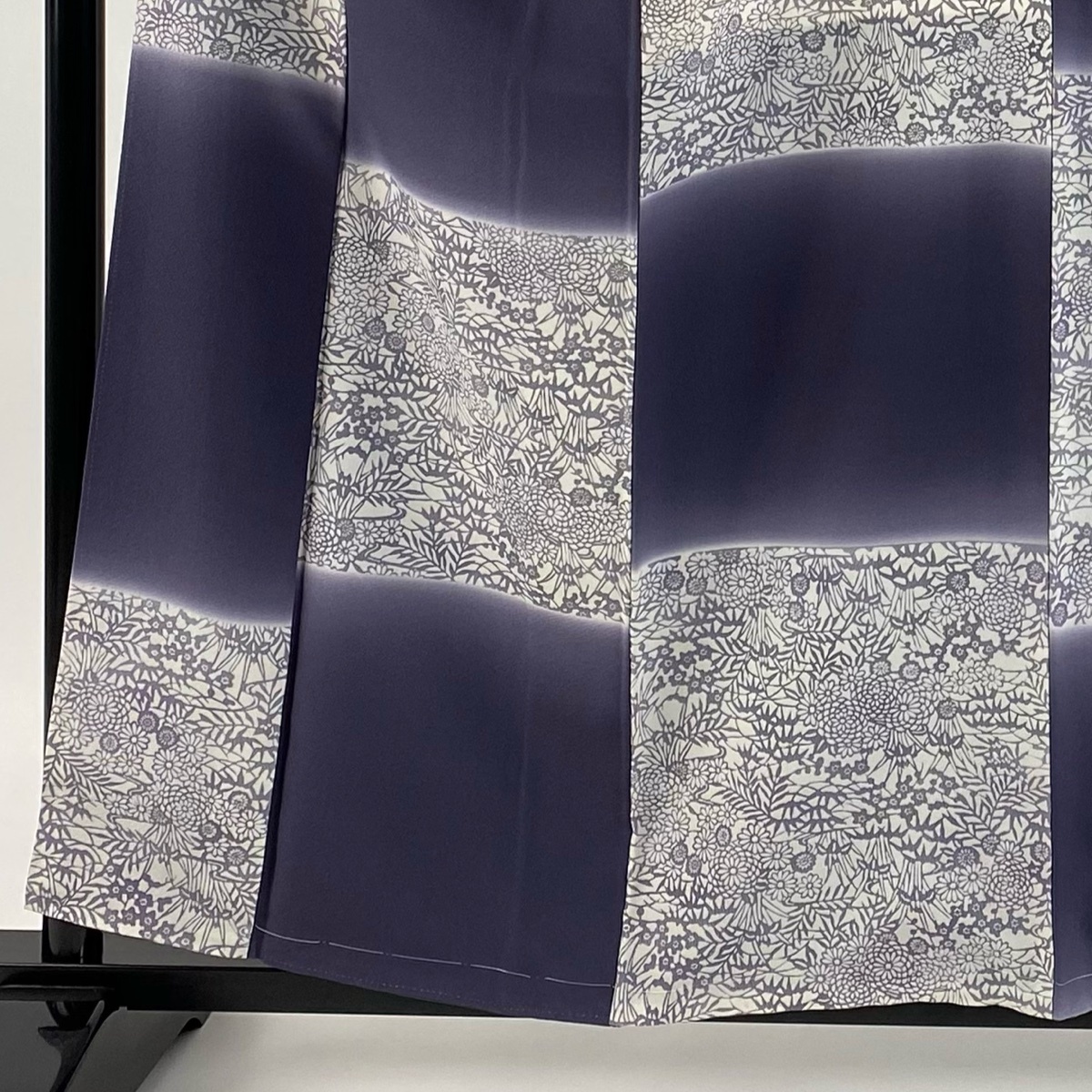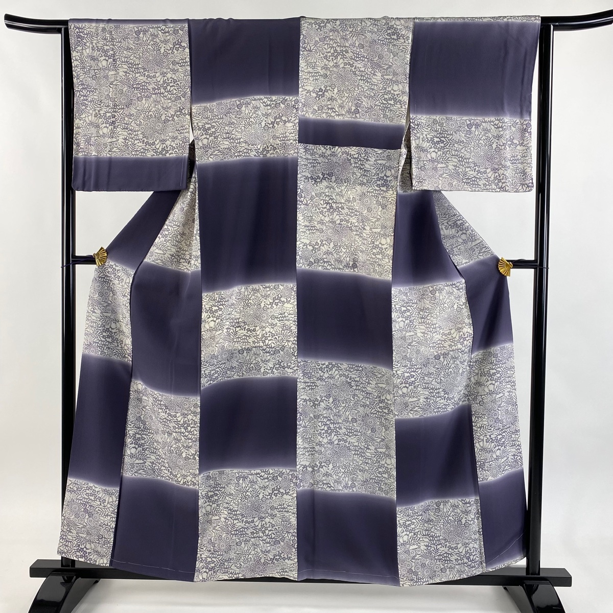 | 小紋 名品 市松 草花 ぼかし 灰紫 袷 身丈159 裄丈63.5 S 正絹 【中古】 |