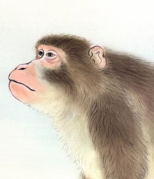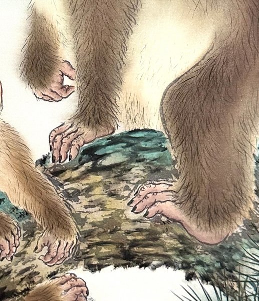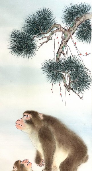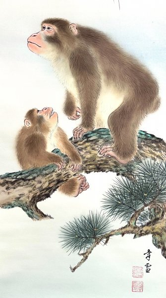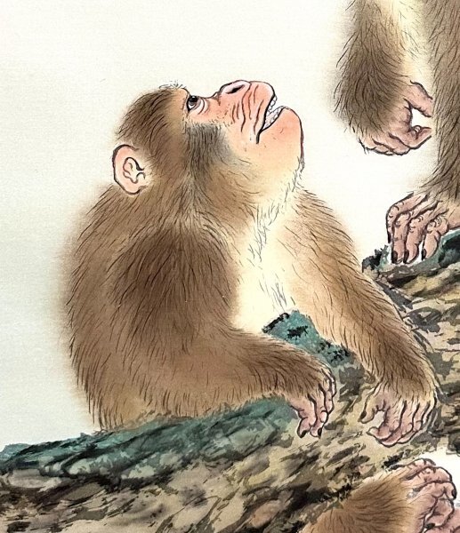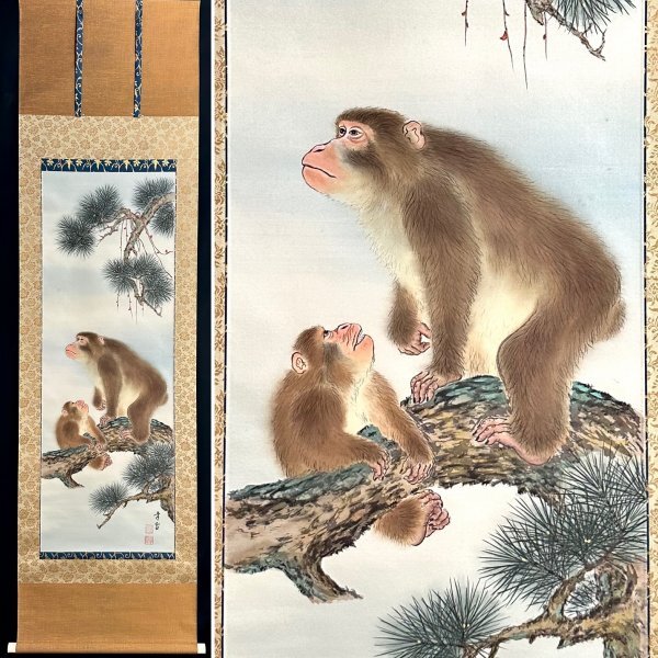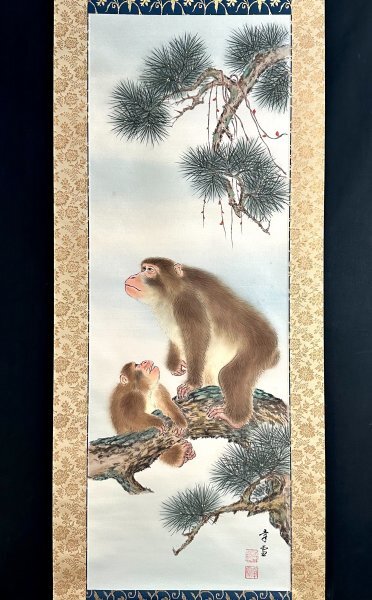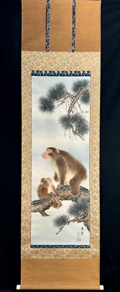 H06H11【真作】国井幸雪「山の人 猿図」掛軸 絹本 肉筆 花鳥図 鳥獣 坪内節太郎に師事 岐阜の人 共箱