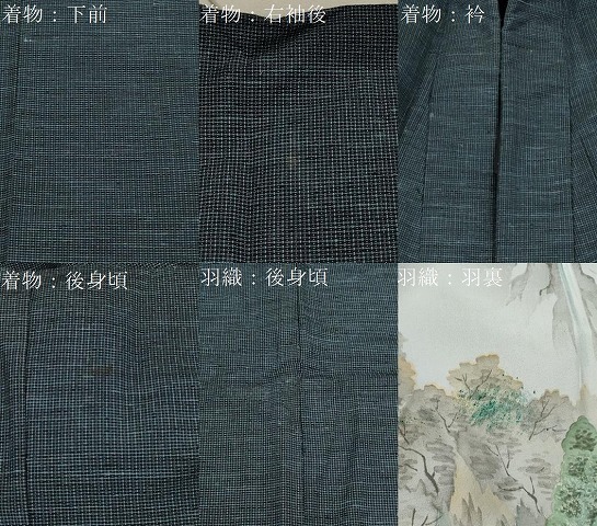 | 【正絹】 着物の状態は接写画像のように下前・右袖後・衿・左胸付近に薄い汚れ、 後身頃に汚れがございますが その他特に目立ったシミ汚れなどもなく大変良い状態です。 羽織の状態は接写画像のように後身頃・羽裏に薄い汚れがございますが その他特に目立ったシミ汚れなどもなく大変良い状態です。 大変上質な逸品になります。 お安く出品致しますので、是非この機会にいかがでしょうか?
