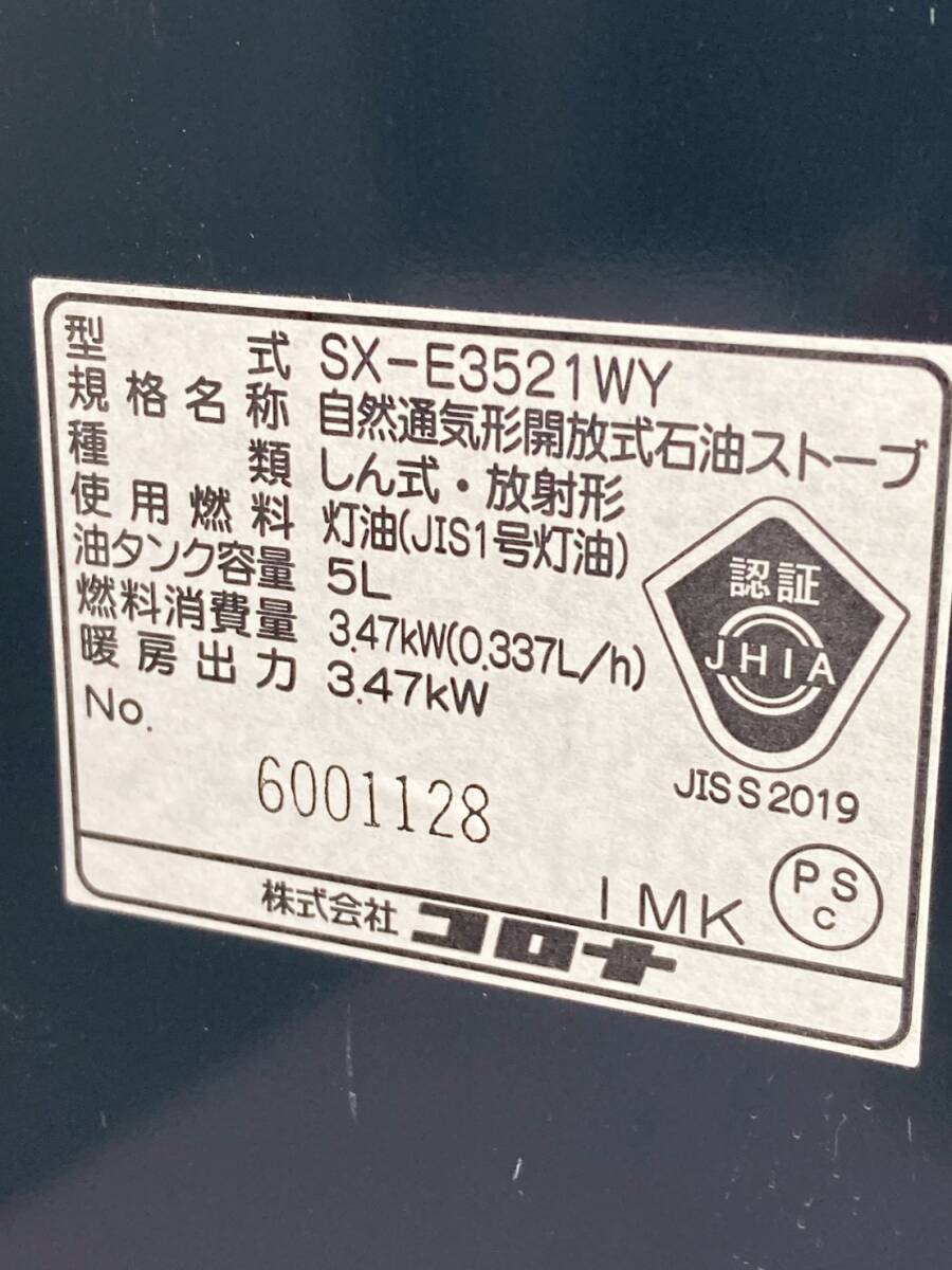 ◆CORONA コロナ 自然通気形解放式石油ストーブ SX-E3521WY 9~13畳 高圧放電点火 トリプル消臭 よごれま栓 2021年製