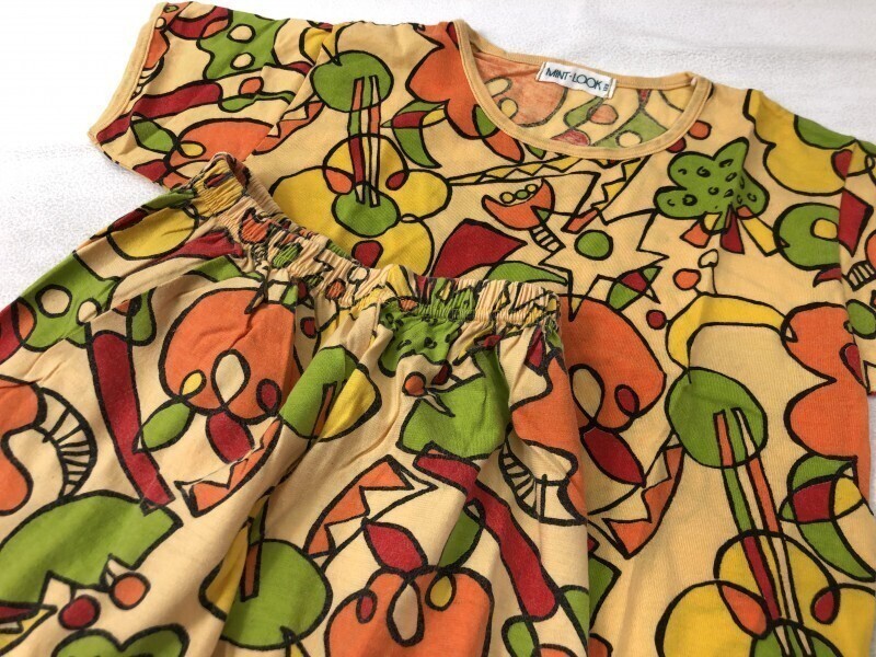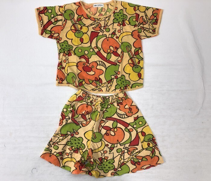 MINT LOOK ミントルック キッズ 子供服 総柄プリント オールド国産レトロ 日本製 半袖Tシャツ ハーフパンツ 上下セットアップ 120 オレンジ です。