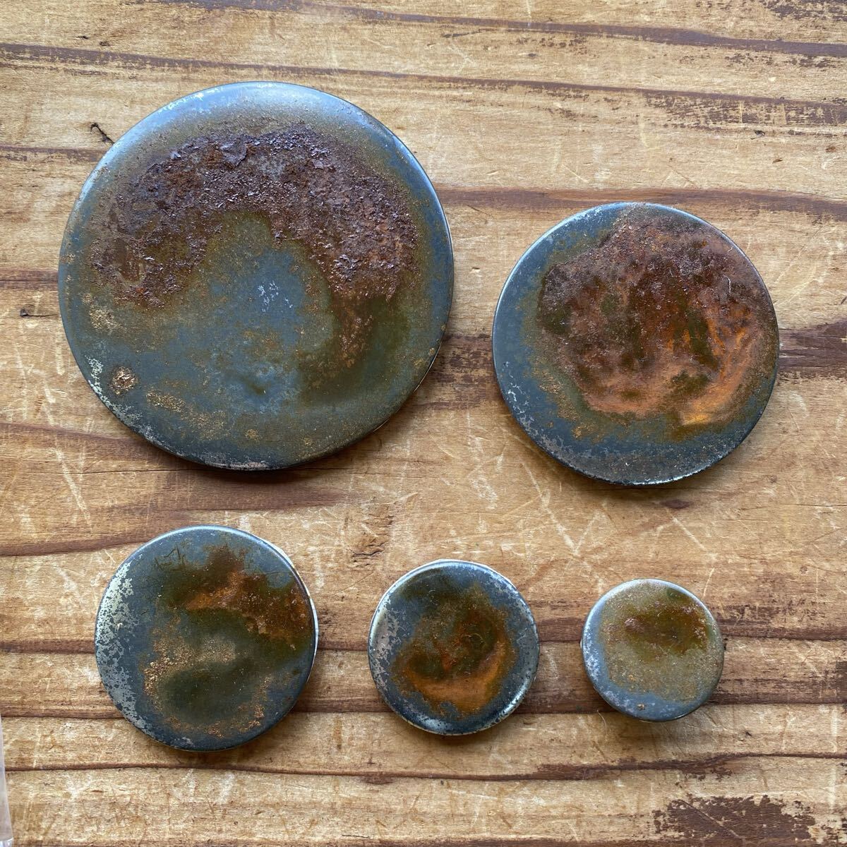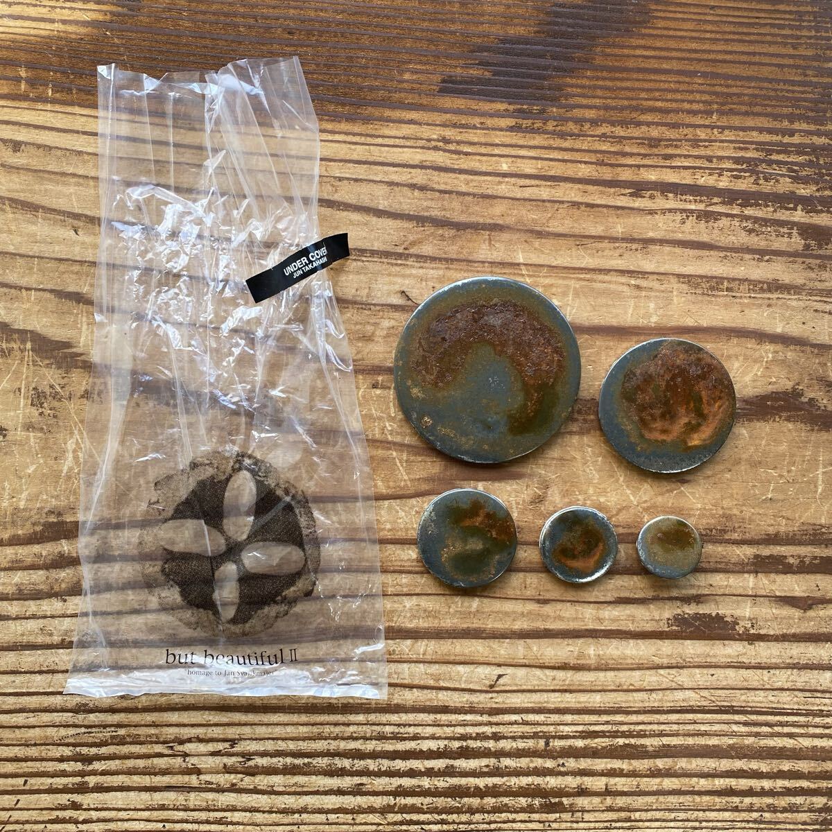 アンダーカバーの2005SS But BeautifulⅡ期の錆加工バッジです。歴代のバッジの中でも特に希少です。コレクションでも多用された名品です。5個セットでの出品になります。長年未使用で保管しています。錆の進行などが多少あります。状態にご理解の上ご入札ください。ぜひこの機会にご検討ください。