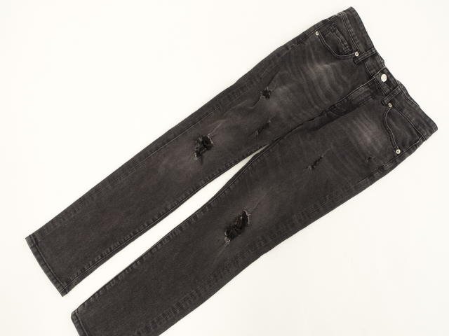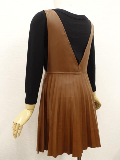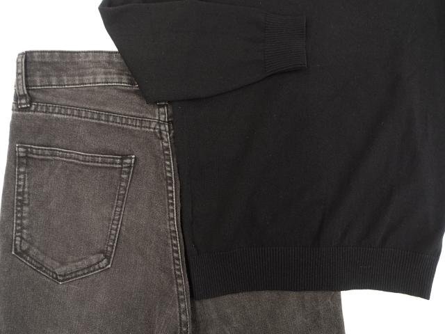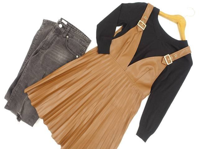 洗えるロング丈ジャンパースカート+九分袖ニットカットソー+デニムスリムパンツ コーディネート上下3点セット S相当 ブラウン/ブラック クール・カジュアル系 20代・30代