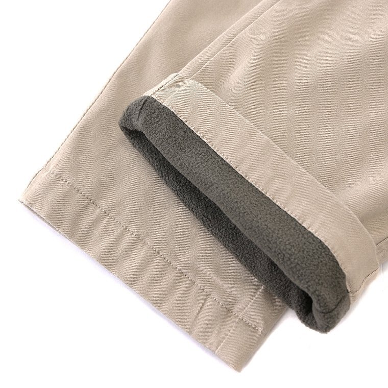 ・ストレッチが効いたソフトなコットン生地を使用。綿本来のソフトな風合いにこだわったチノパンツ。 ・裏が起毛されたフリース仕様で、肌触りが良い素材で暖かく温かさをキープできます。 ・腰周りから腿にかけてゆとりを持たせ裾に向かって細くなるテーパードシルエット。 ・ヒップから太ももまでのラインを拾わないシルエットは体型カバーにも重宝し、美脚効果とラフな雰囲気・ストレッチによるリラックス感を演出。 ・様々なコーディネートに合わせやすいノータック仕様。 ・ご家庭でお洗濯頂けるウォッシャブル仕様で、お手入れが簡単です。 |